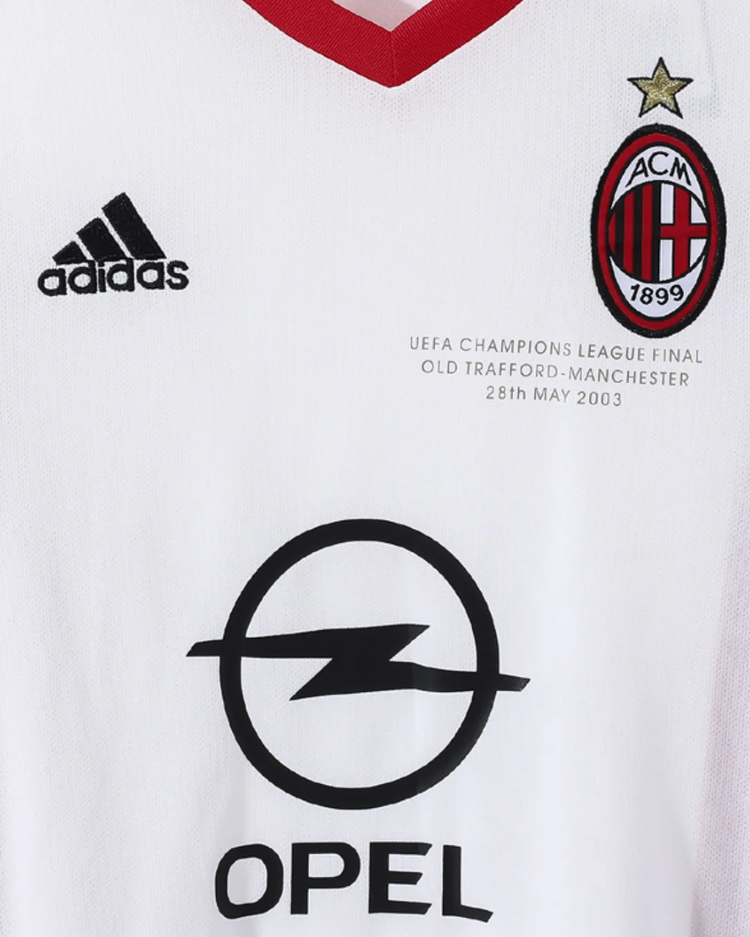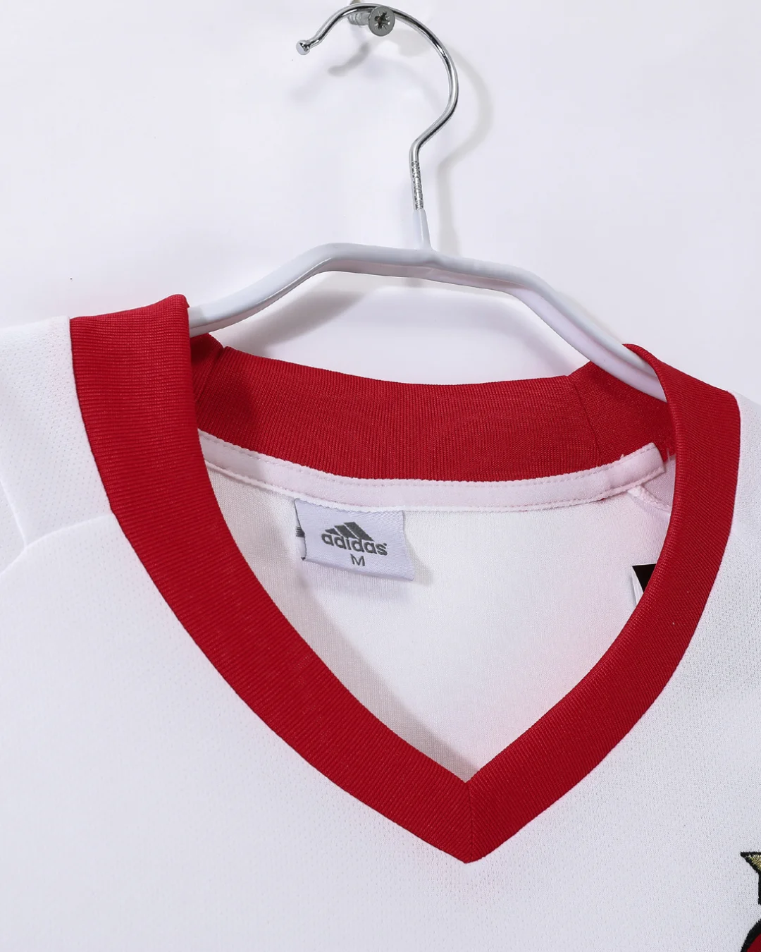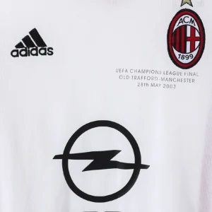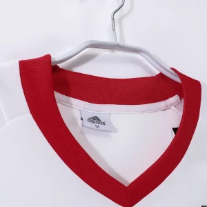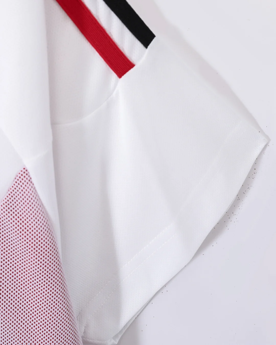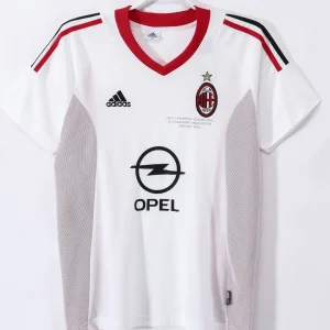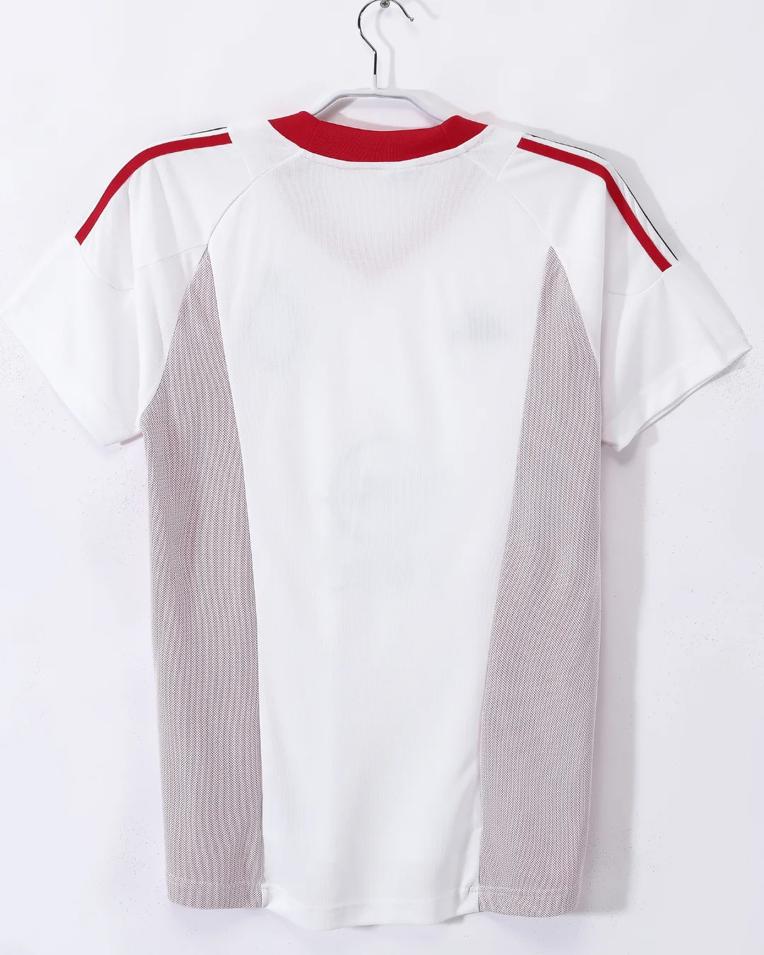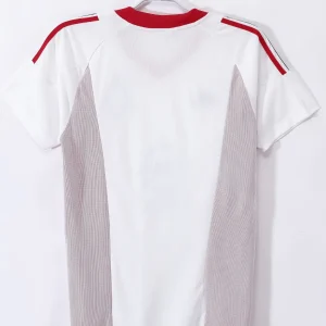Celebrate AC Milan’s iconic 2002/03 season with this classic Away Jersey, an elegant Adidas design worn by football legends such as Andriy Shevchenko, Rui Costa, and Paolo Maldini. This jersey features a pristine white base accented with red and black stripes on the shoulders and sleeves, reflecting the club’s traditional colors and bold identity.
