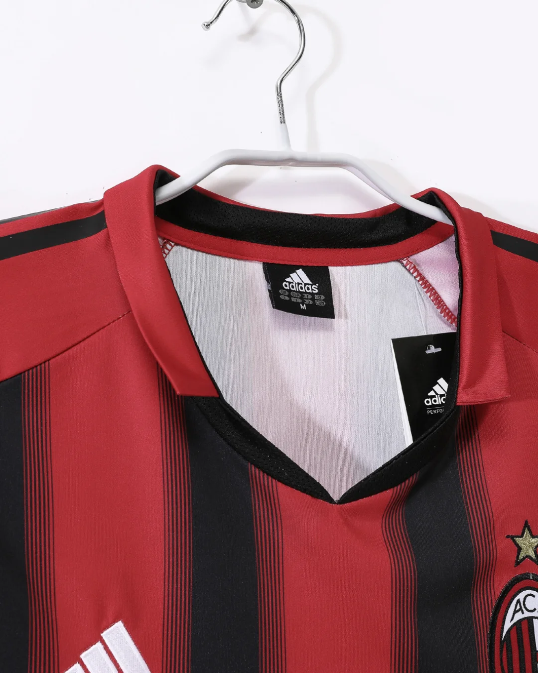 Celebrate the legacy of one of football’s most prestigious clubs with the AC Milan 2004/05 Home Jersey, a classic adidas design that honors the Rossoneri’s iconic red and black stripes. This jersey features vertical stripes in Milan’s traditional colors, enhanced subtly with white accents that reflect the club’s timeless style and prestige during a competitive period.