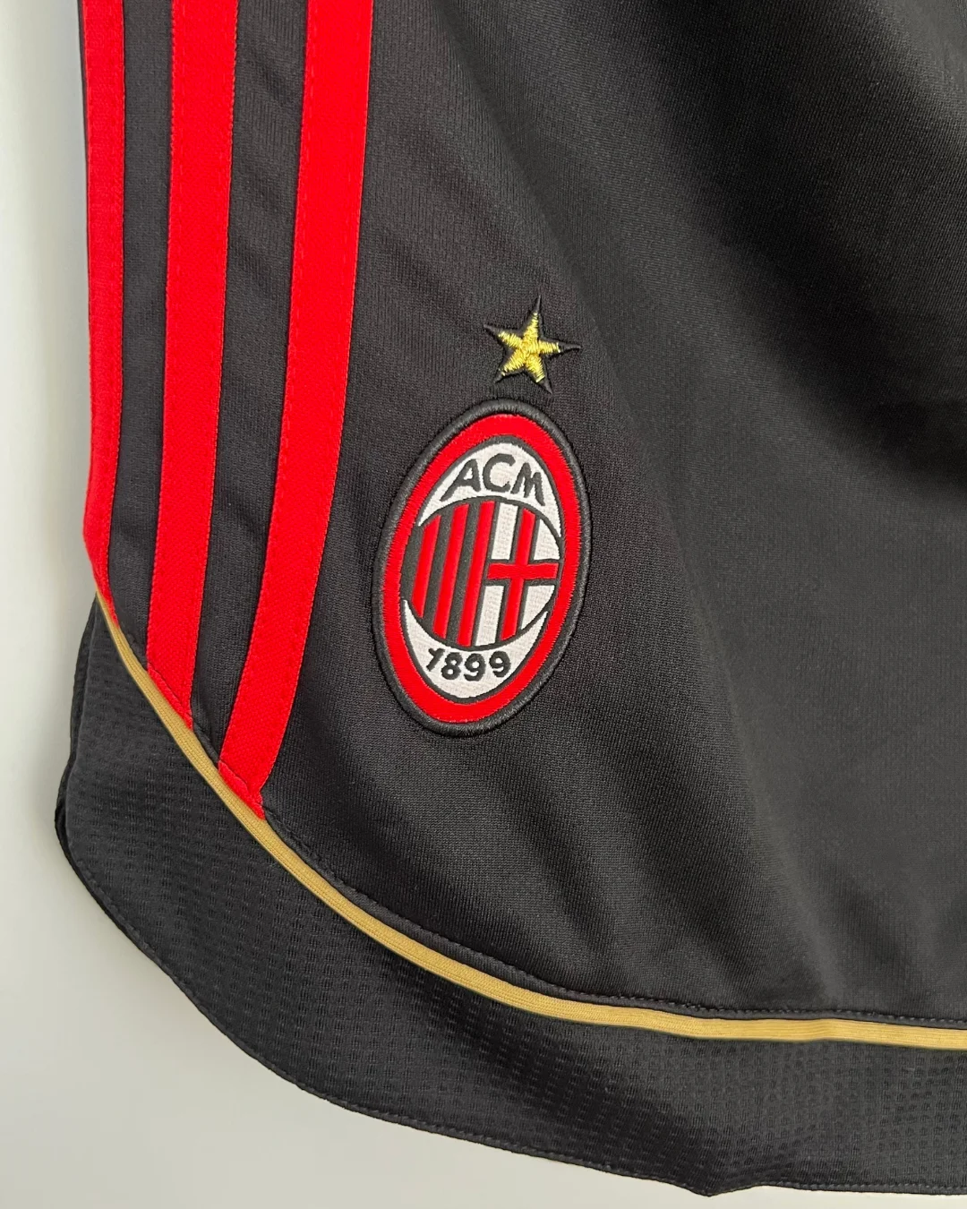 Celebrate a classic era of AC Milan football with the AC Milan 06/07 Home Shorts. These shorts are part of the iconic home kit worn by legendary players such as Kaká, Andrea Pirlo, and Paolo Maldini during their 2006-07 UEFA Champions League-winning season, reflecting the rich heritage and style of the Rossoneri. Featuring a sleek black base accented with bold red and gold detailing, they embody the timeless aesthetics of AC Milan’s home kit.