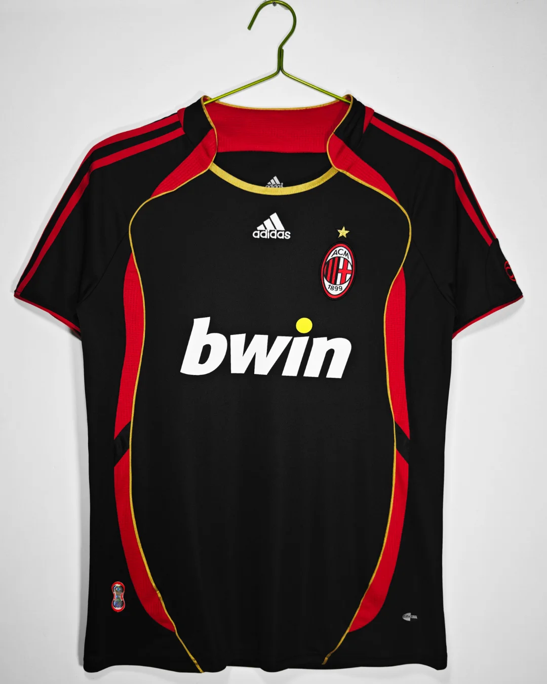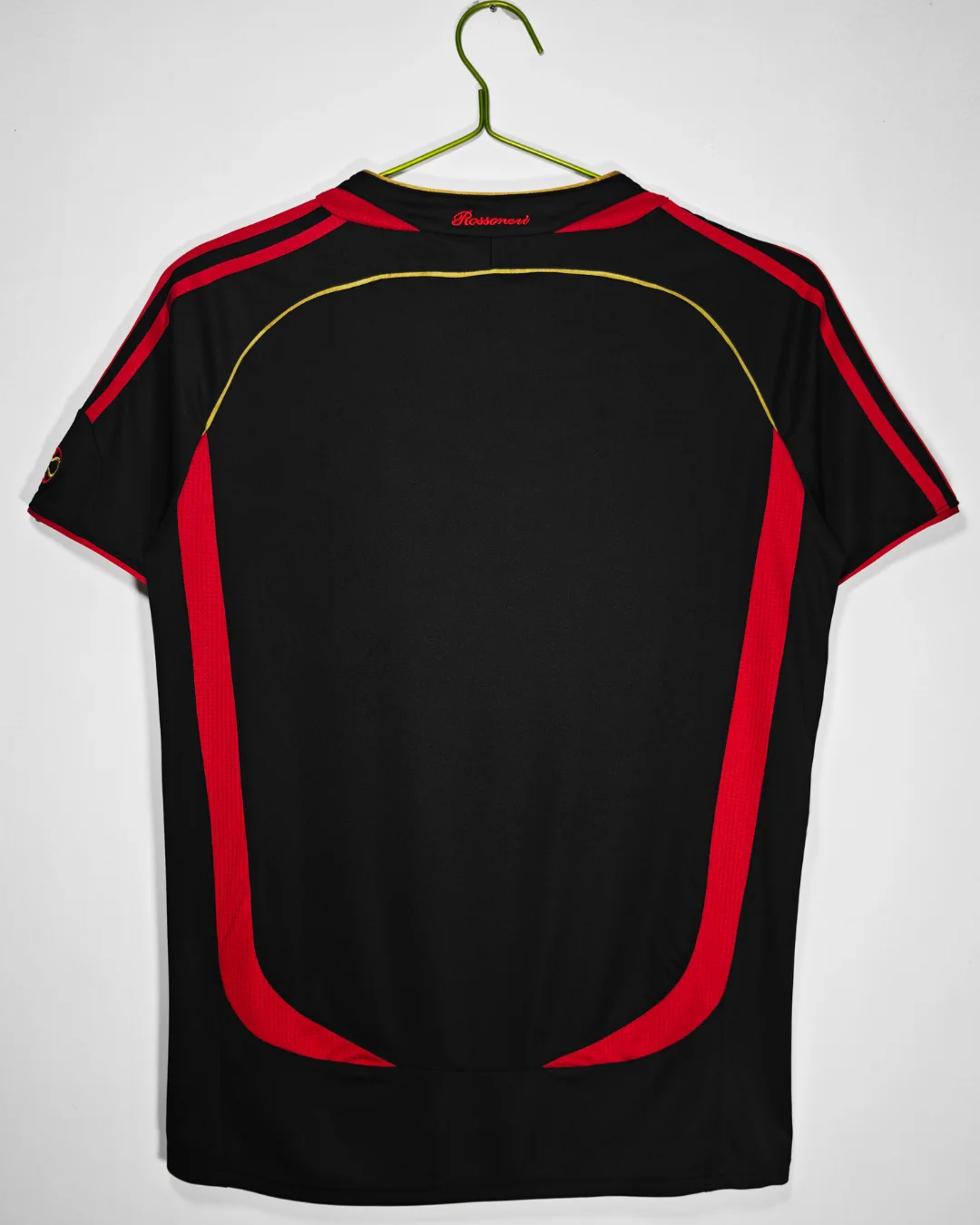 Experience the elegance of AC Milanβs golden era with theΒ 2006/07 Third Jersey, an Adidas design that blends classic Milanese style with modern performance features. This third kit stands out with its bold black base accented by subtle red and gold trims, representing the clubβs iconic colors with a sleek and minimalist approach.