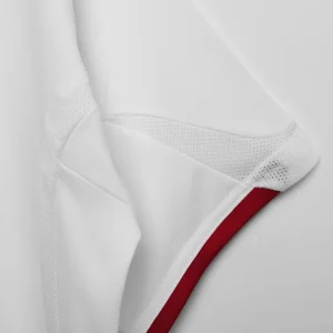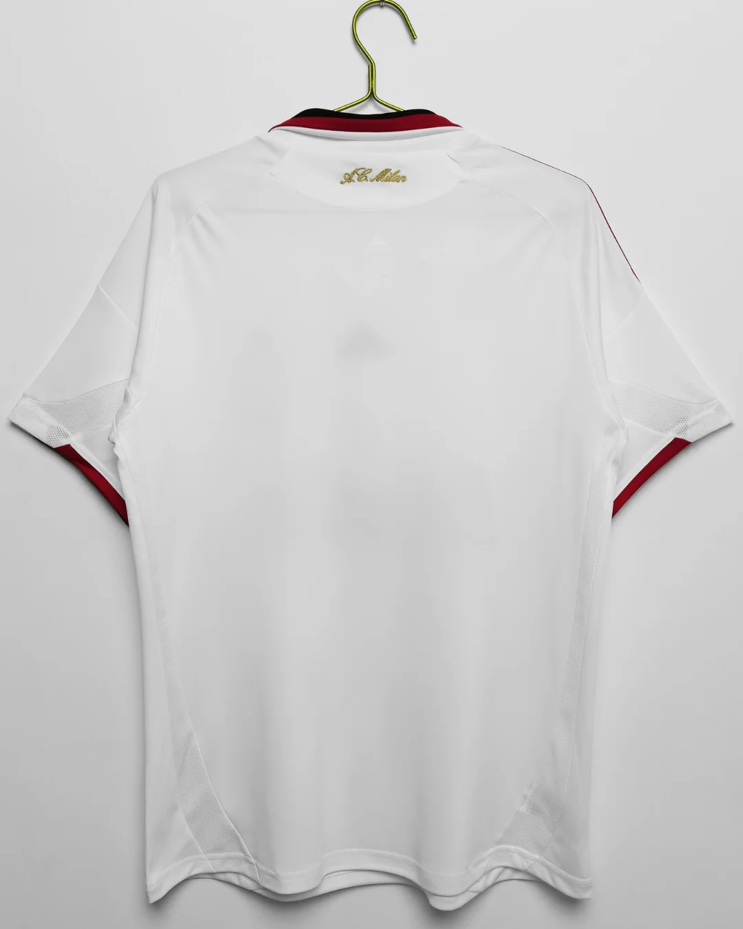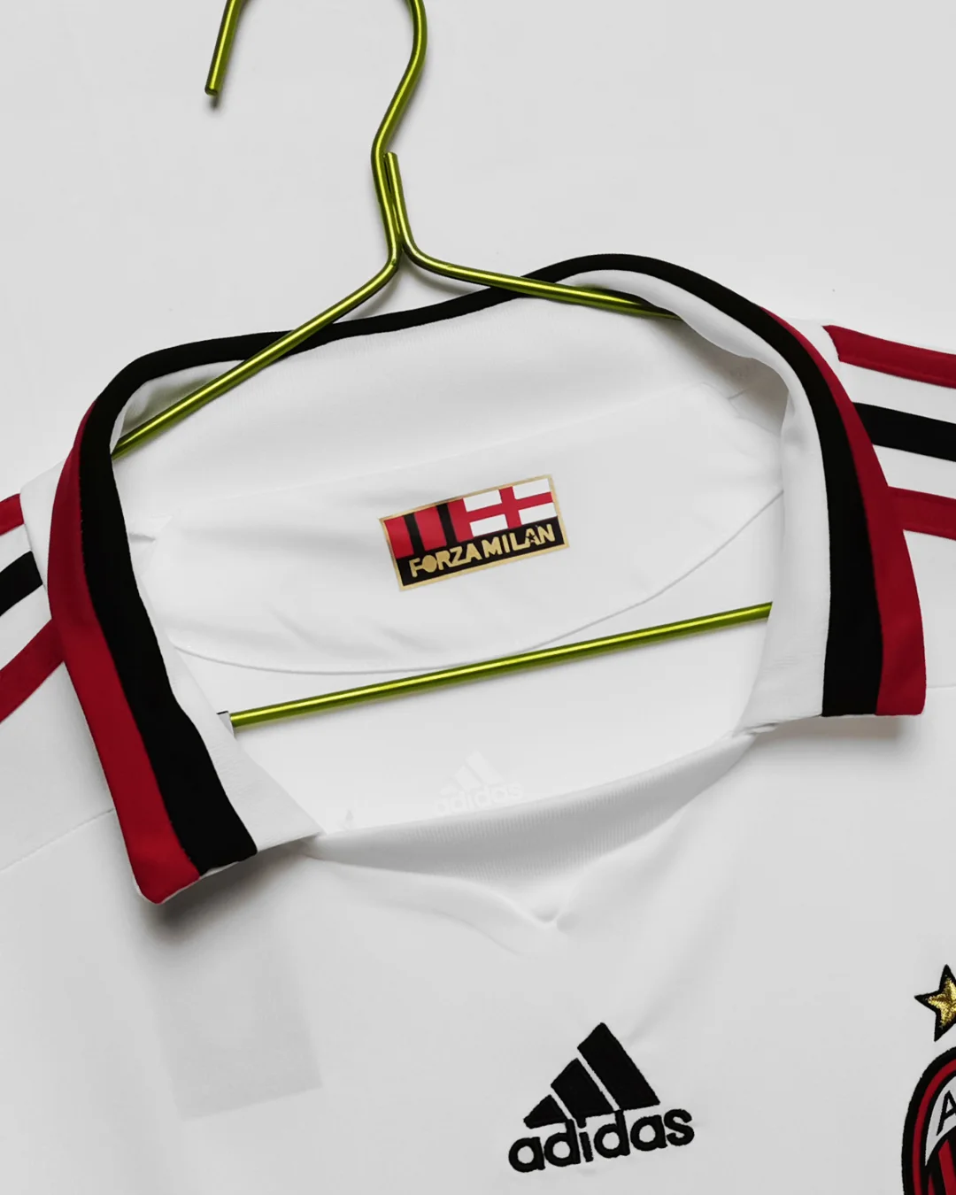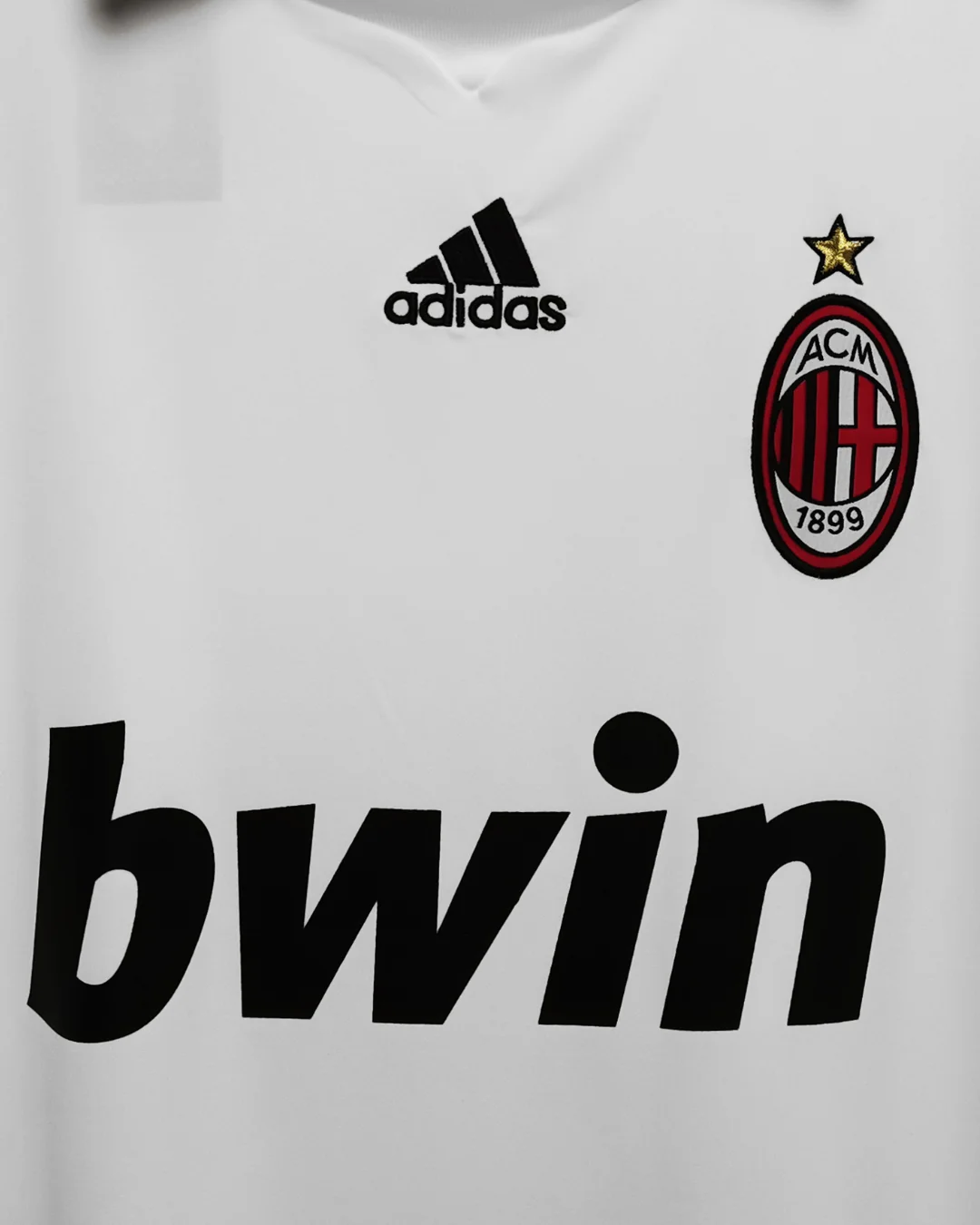 Step into the elegance of Italian football with the AC Milan 2009/10 Away Jersey, a stylish departure from the club’s iconic red and black home colors. Manufactured by Adidas, this away kit features a clean white base accentuated with subtle black and red stripes on the shoulders, collars and cuffs representing AC Milan’s rich heritage with modern design sophistication.