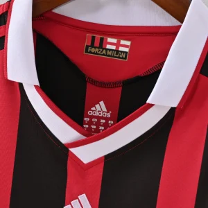 Celebrate the timeless tradition and competitive spirit of AC Milan with the 2009/10 Home Jersey, a classic design that honors one of the Rossoneri’s memorable seasons. This jersey proudly features the iconic red and black vertical stripes, a symbol synonymous with AC Milan’s rich footballing heritage.