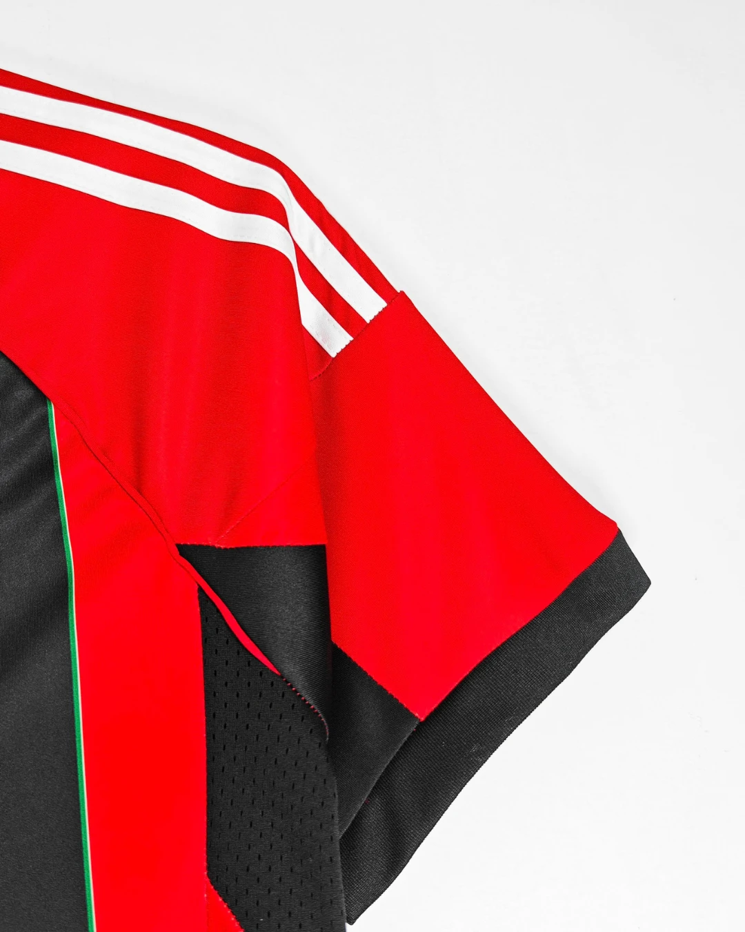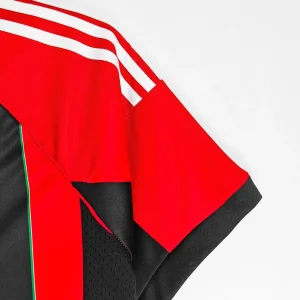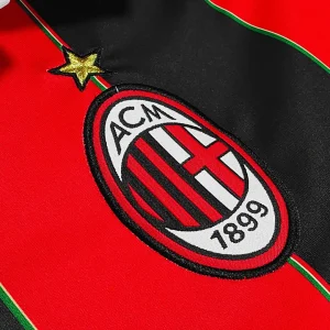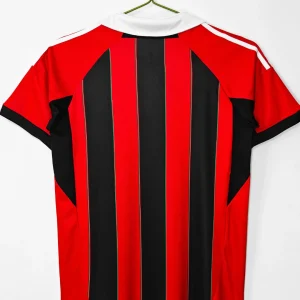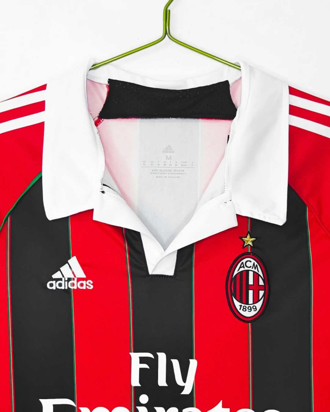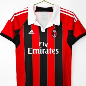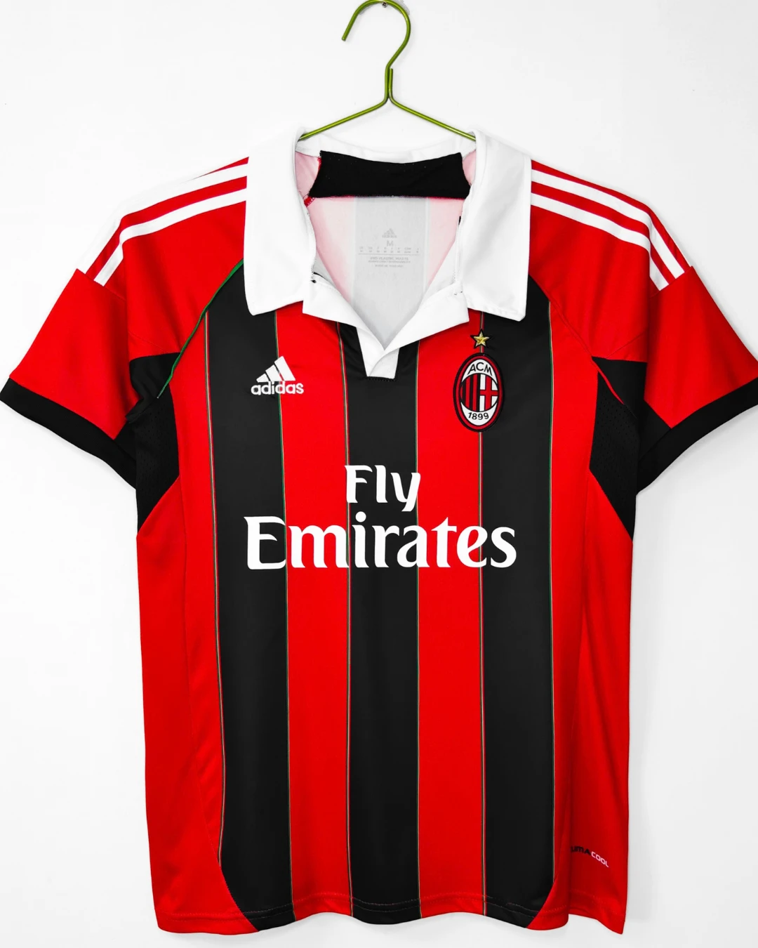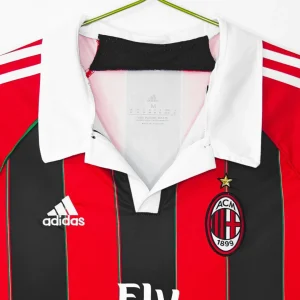 AC Milan’s 2012/13 Home Jersey from Adidas marked a transitional Serie A season after losing legends like Nesta and Gattuso, featuring the classic rossoneri red-and-black wider vertical stripes with subtle Italian flag tricolor inserts between stripes, distinctive white polo collar with front opening, TechFit compression and Formotion 3D fit for enhanced mobility, worn during their 3rd place finish and Champions League campaign. Perfect for young Rossoneri fans, this replica uses lightweight ClimaCool polyester for ventilation and temperature regulation, embroidered club crest with gold star on left chest, Fly Emirates sponsor in white, white Adidas 3-stripes on shoulders and regular relaxed fit.
