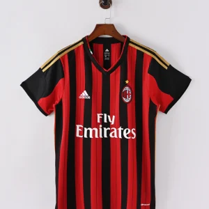 The AC Milan 2013/14 Home Jersey is a modern emblem of tradition—where sharp design meets the heritage of one of football’s most storied clubs. Crafted in the unmistakable red and black stripes, accented with gold trim, this jersey marked a bold statement during a defining era at the San Siro.