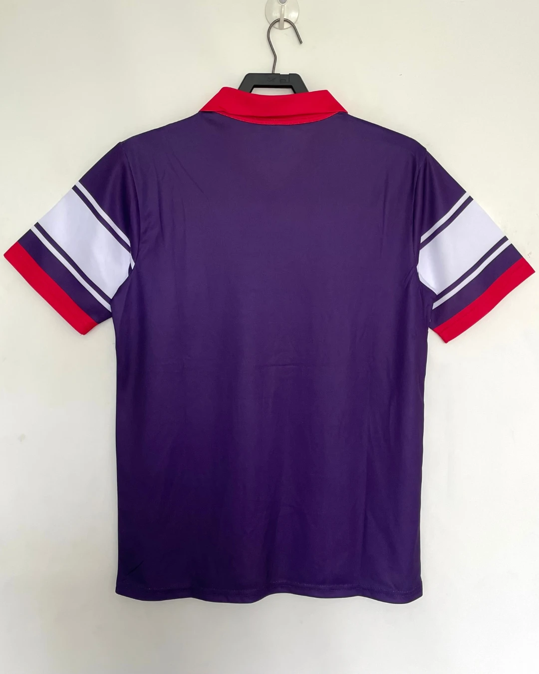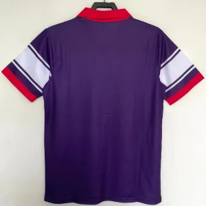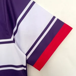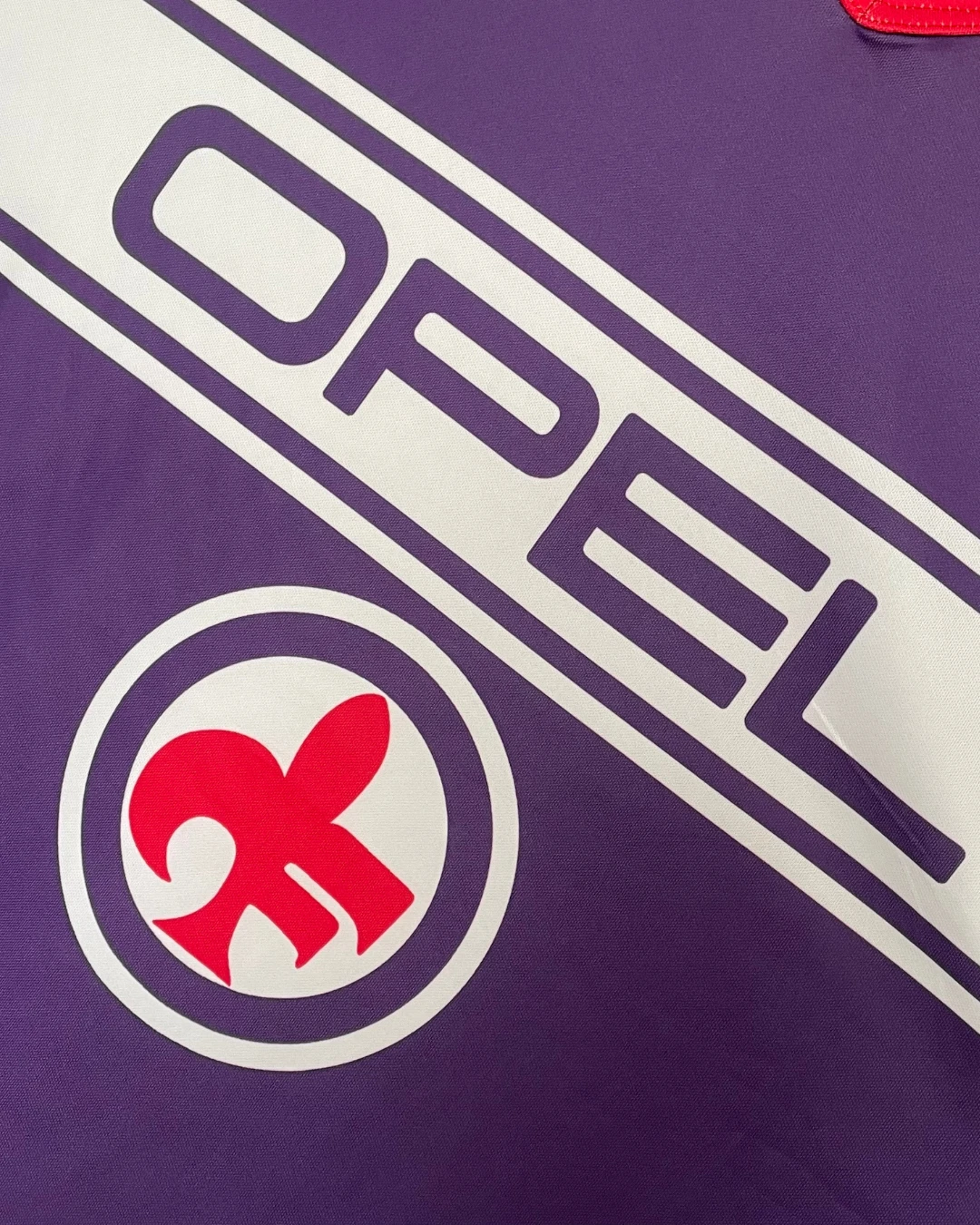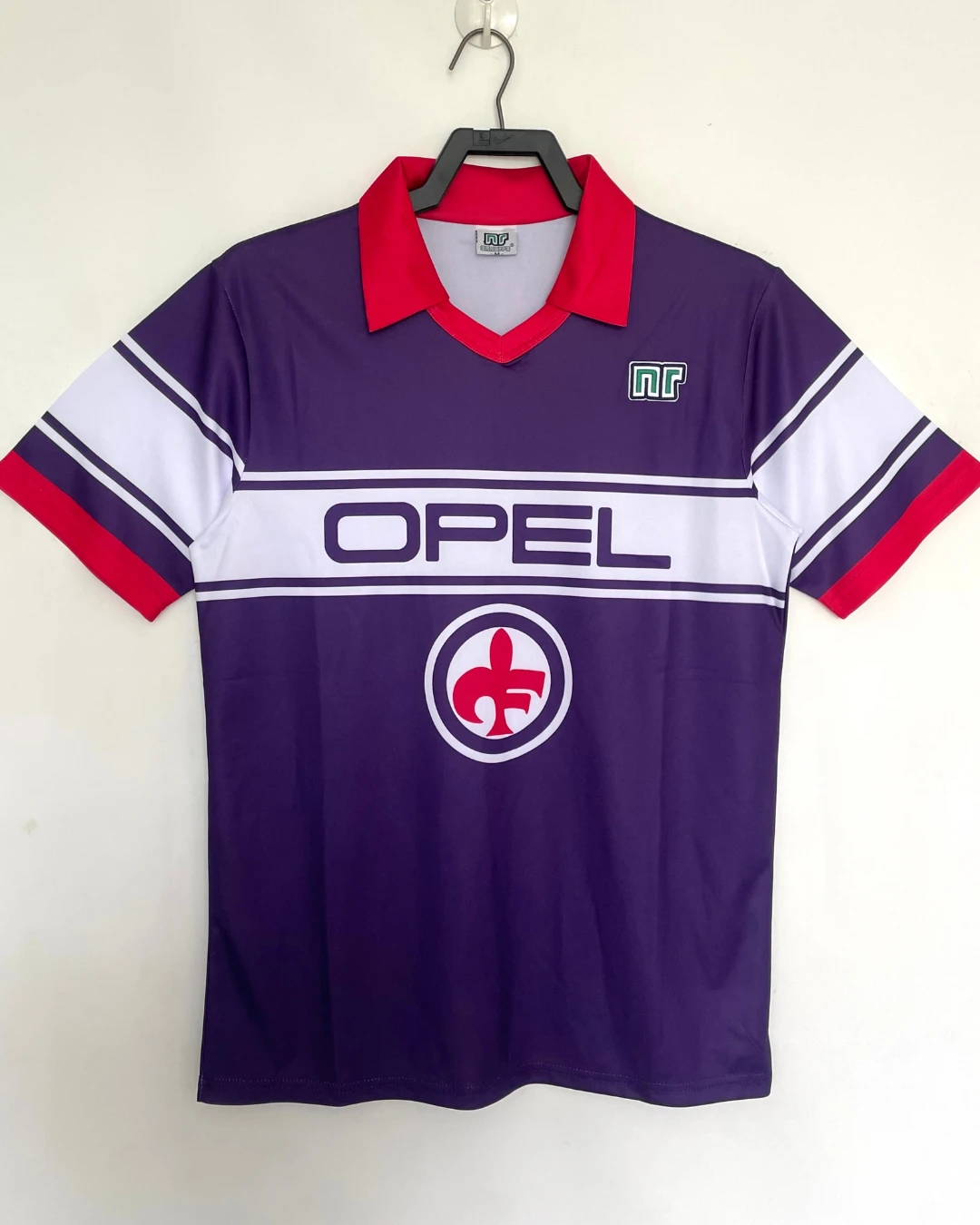 ACF Fiorentina’s legendary 1983-85 Home Jersey from Ennerre defined La Viola’s stylish Serie A identity at the Stadio Artemio Franchi, worn by Sócrates, Giancarlo Antognoni, and Daniele Massaro during competitive mid-80s campaigns. The iconic purple base features a bold white horizontal chest band, red collar and sleeve cuffs, the classic Fiorentina lily crest, Ennerre “NR” logo, and prominent “Opel” sponsor across the front, quintessential 80s Italian elegance.