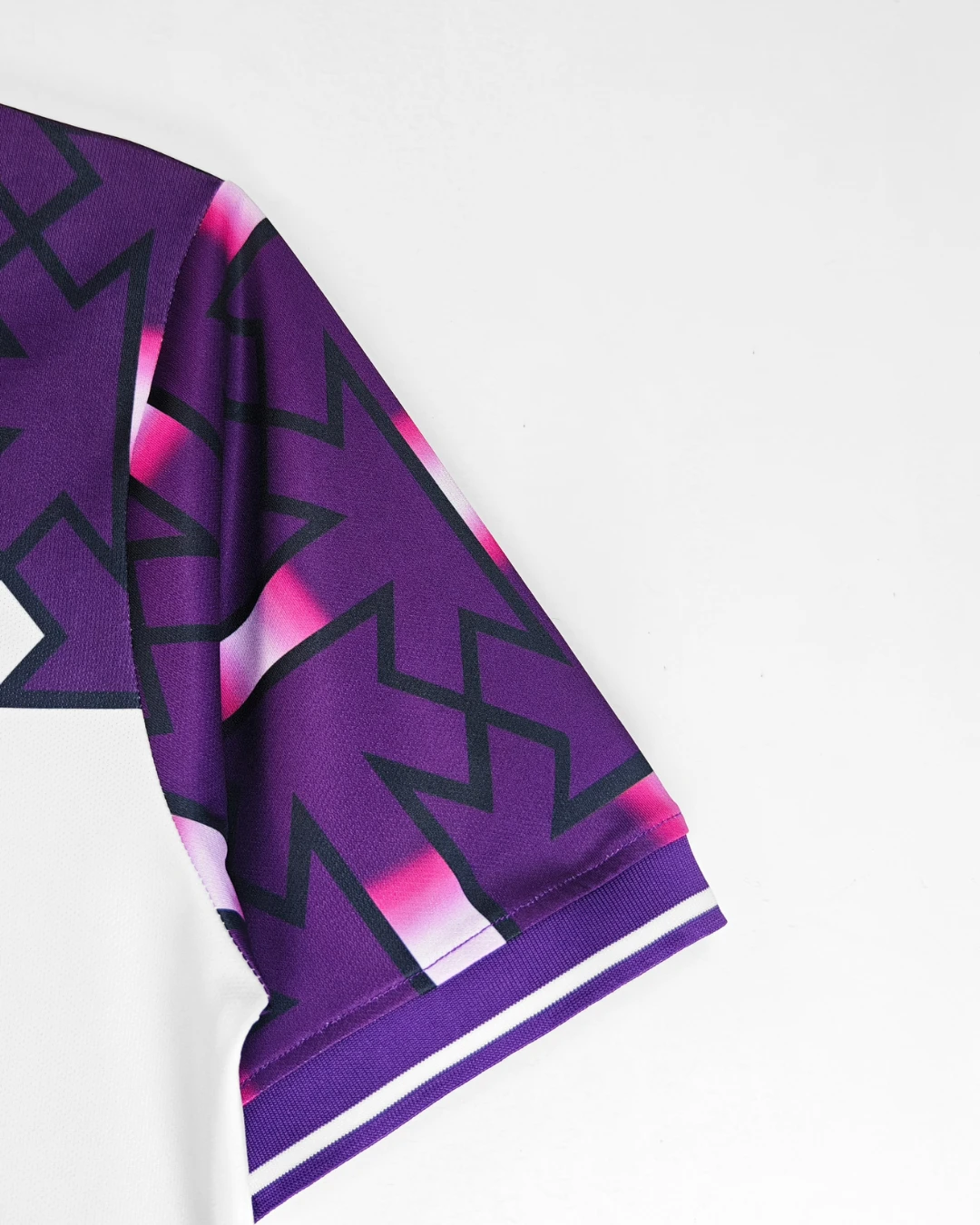 White base with geometric “banned” shoulder patterns