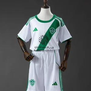 The Al Ahli Kids 25/26 Away jersey delivers a clean white look with classic green detailing, combining the club’s heritage with a modern youth fit. The design is inspired by the 1978–79 home kit, featuring a single palm-leaf graphic across the chest and the new Al Ahli FC crest for an authentic finish. Made for comfort and everyday wear, this kids jersey uses soft recycled polyester with AEROREADY moisture-managing fabric to help keep young fans cool and dry.