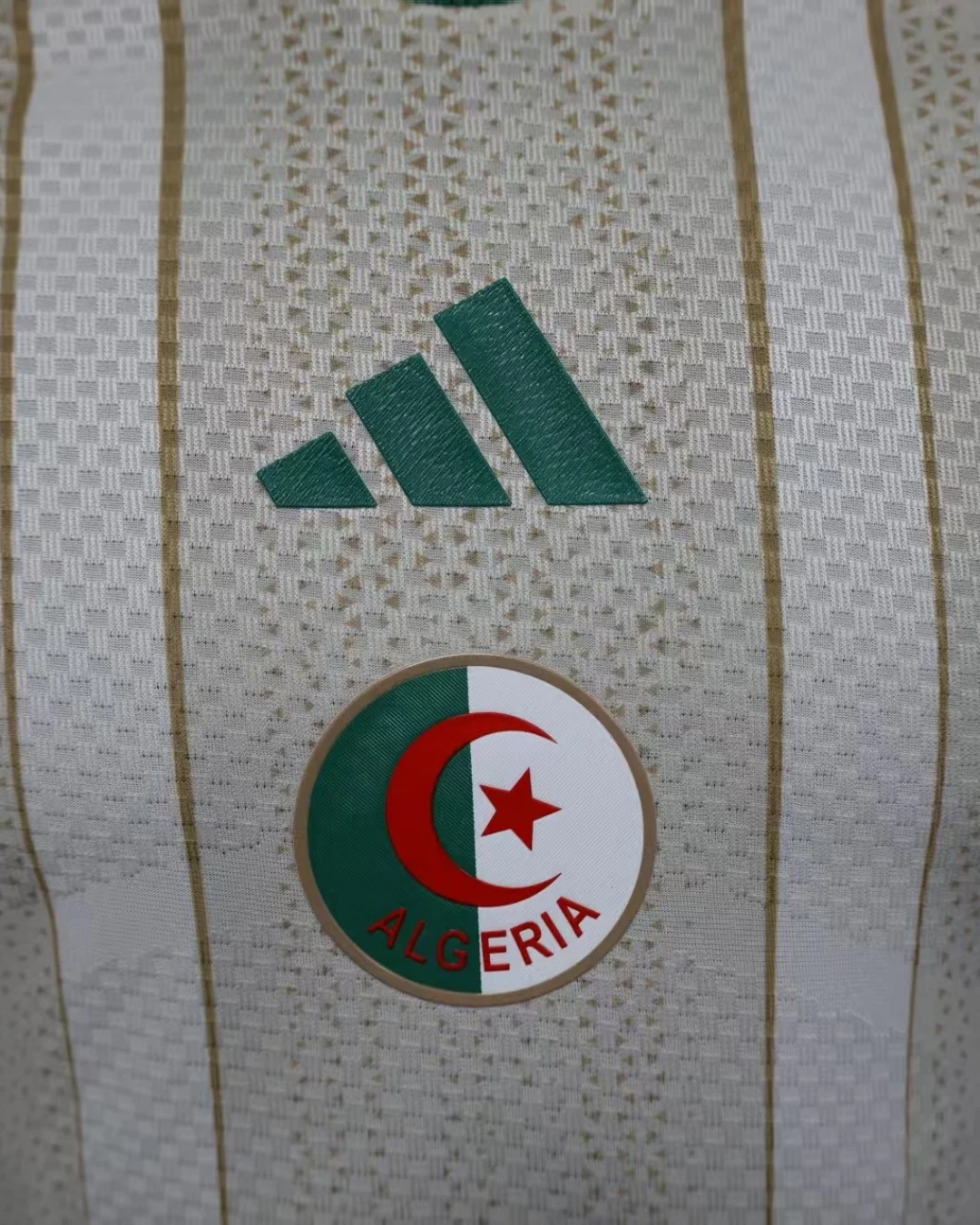 Support the Desert Foxes with the Adidas Algeria 2026 World Cup Home Authentic Jersey, a masterful blend of tradition and cutting-edge technology designed for peak performance and national pride. This jersey features a distinctive chalk white base inspired by the iconic sand dunes of the Algerian Sahara Desert, accented with subtle golden traditional patterns that create elegant vertical pinstripes across the front.
