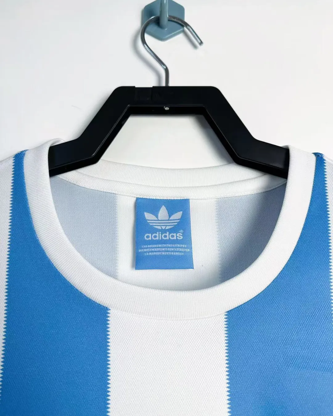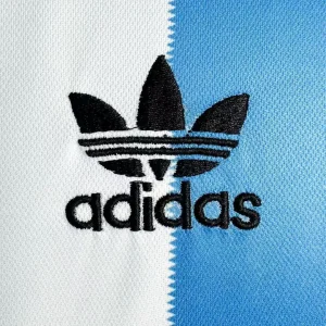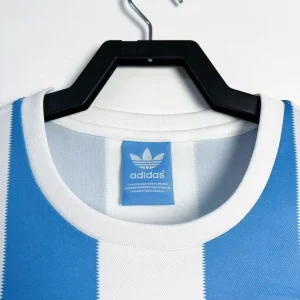 Celebrate Argentina’s first World Cup triumph with this historic 1978 Home Jersey from Adidas, worn by Mario Kempes and El Diego Maradona during their championship run on home soil. The iconic light blue and white vertical stripes feature the classic short-sleeve crew neck design with the embroidered AFA on the left chest and Adidas three stripes on the right shoulder, capturing pure 1970s football elegance. Made from 100% cotton single jersey knit fabric with engineered pre-dyed stripes, it delivers heavyweight breathability true to the era’s match-worn construction.
