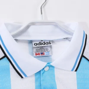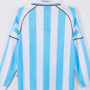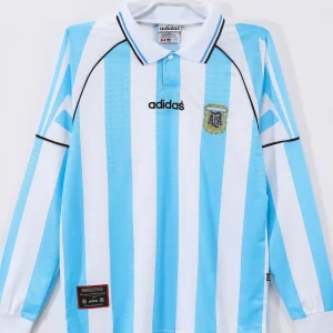 Step back into a golden era of Argentine football with the Argentina 1996/97 Home Jersey, a classic piece that embodies the passion and tradition of La Albiceleste. This iconic jersey features the traditional vertical light blue and white striped design that has become synonymous with Argentina’s national identity.
