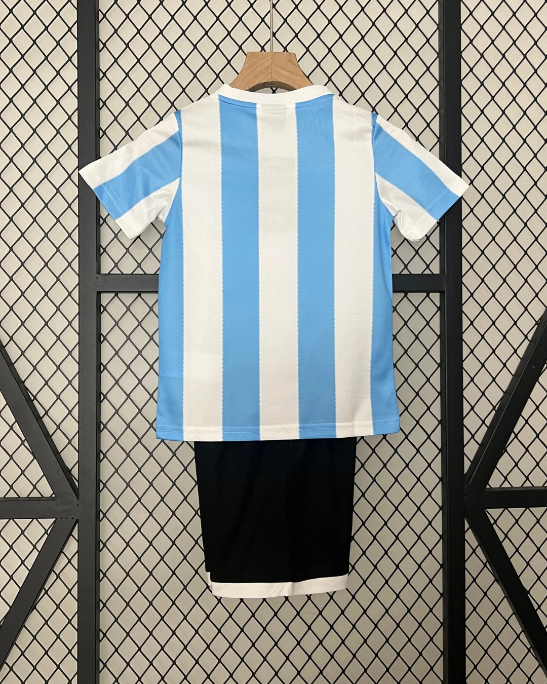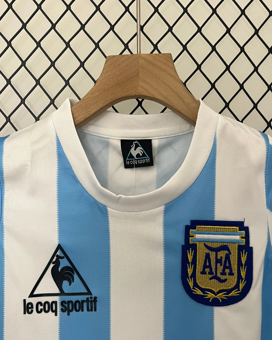 Argentina’s legendary 1986 World Cup winning Kids Home Jersey from Le Coq Sportif immortalizes Diego Maradona’s “Hand of God” and “Goal of the Century,” featuring iconic light blue and white horizontal stripes with distinctive white central stripe, crew neck collar, and sponsorless purity that powered the Albiceleste to their second world title against West Germany in Mexico City. Perfect for young champions fans, this retro replica uses breathable 100% polyester Airtex mesh construction designed for Mexico’s heat, embroidered Argentina crest with laurels on left chest, Le Coq Sportif cockerel logo opposite, short sleeves and loose 80s fit optimized for kids.