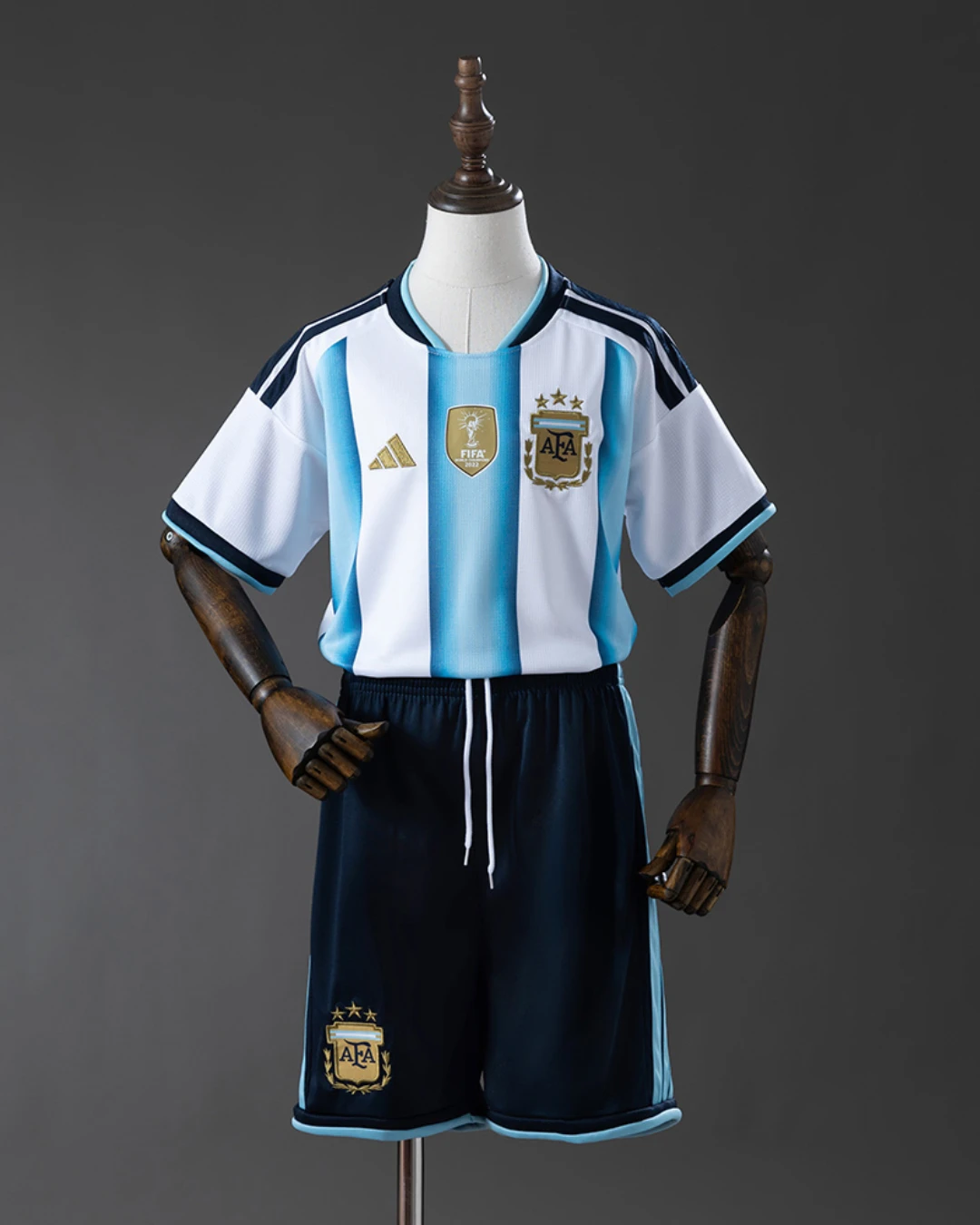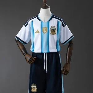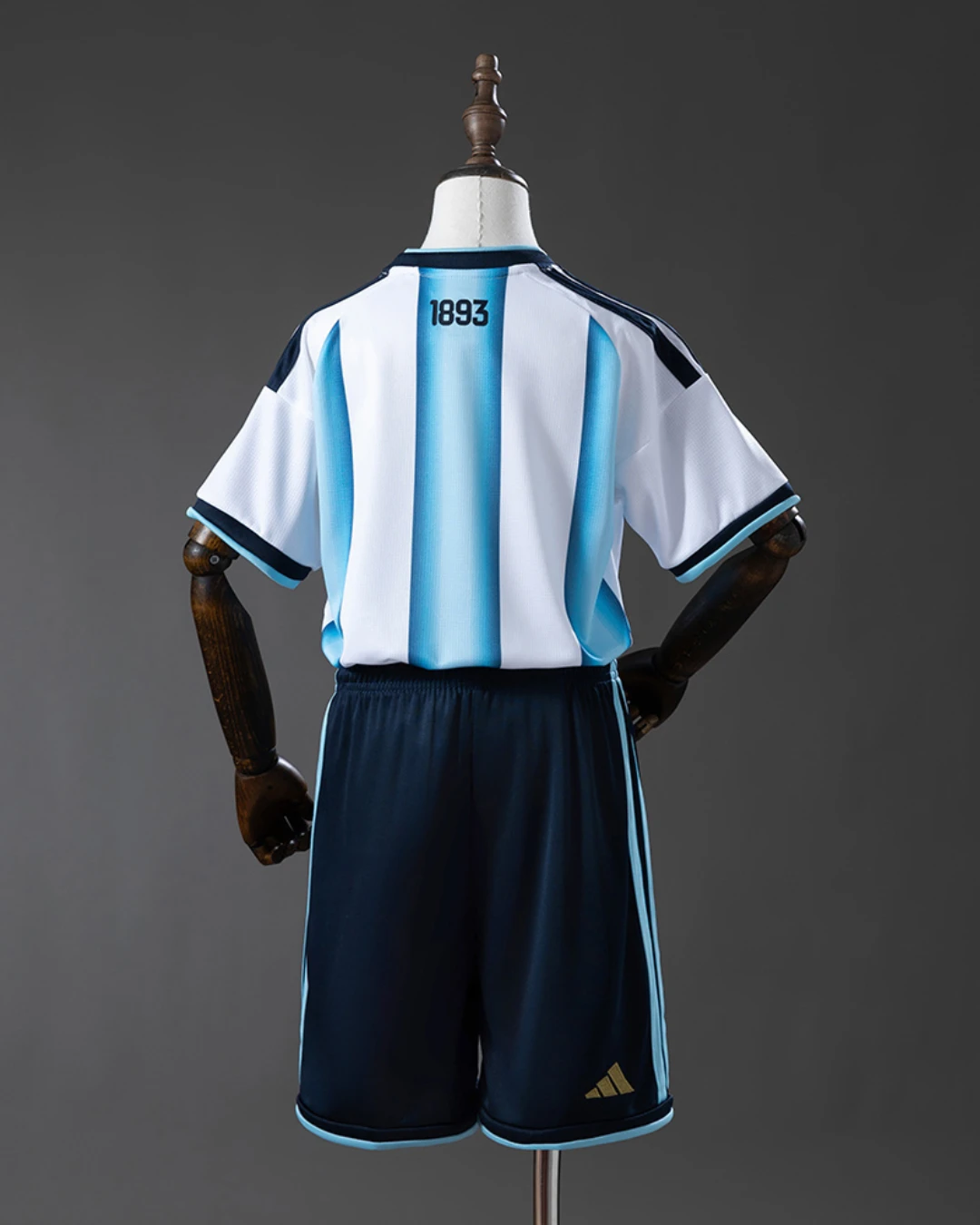 The Argentina Kids 2026 Home Jersey brings the classic Albiceleste look with white and sky-blue vertical stripes, updated with a subtle gradient effect that honors Argentina’s World Cup-winning shirts from 1978, 1986, and 2022. It is the youth version of adidas’ 2026 home design, made for young fans who want the same proud national-team style as the senior squad. Built for comfort and everyday wear, this kids jersey uses lightweight recycled polyester with adidas Climacool technology to help keep players cool, dry, and focused.
