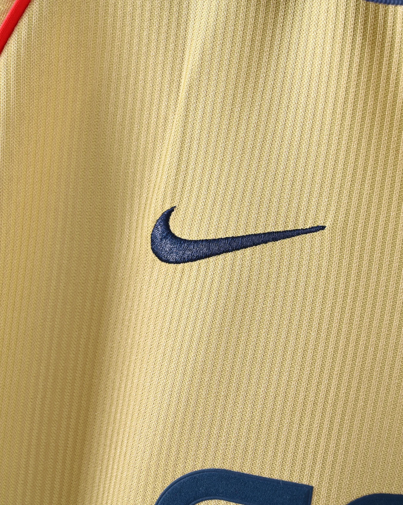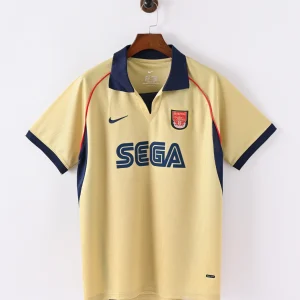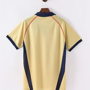 Relive the unforgettable invincibility in motion with the Arsenal 2001/02 Away Jersey — long sleeve edition. This iconic gold kit marks the season the Gunners clinched the Premier League title at Old Trafford, a moment forever etched in Arsenal folklore.
