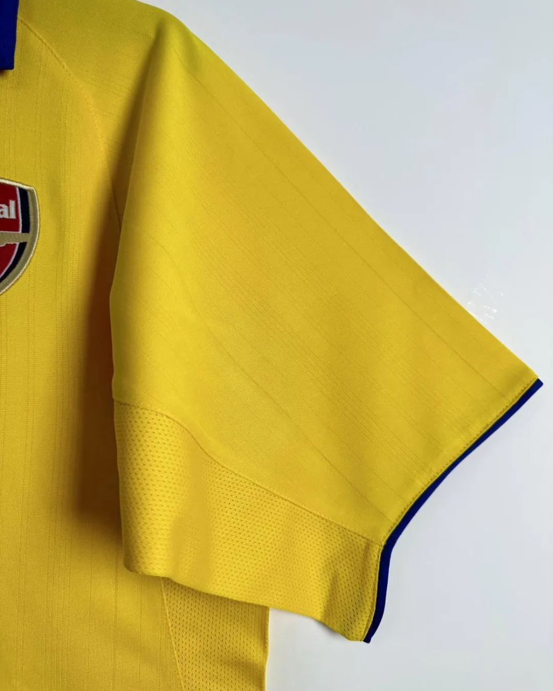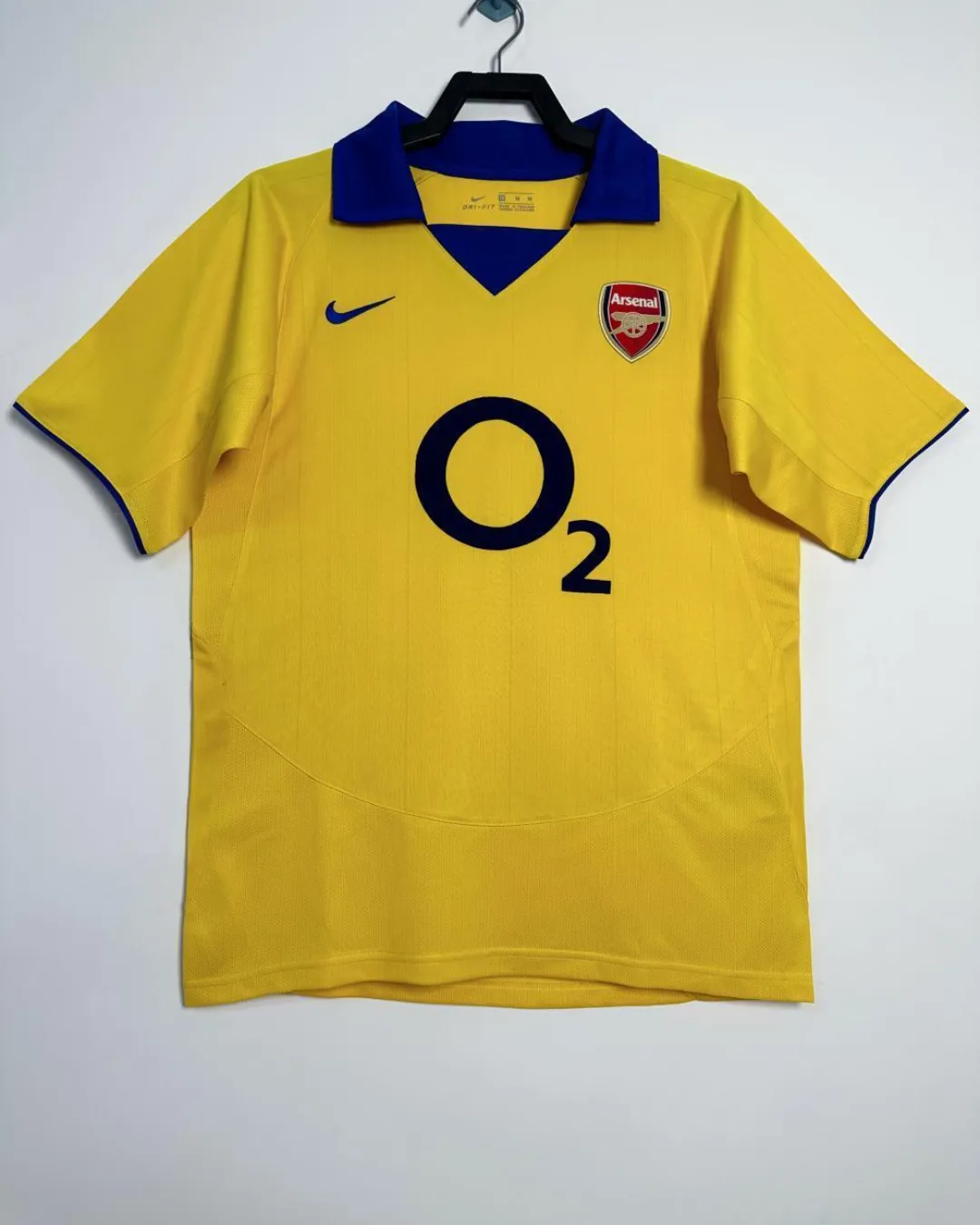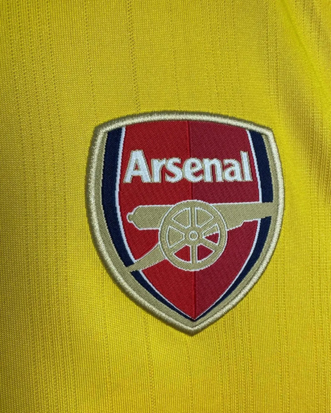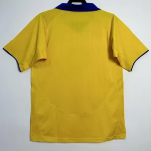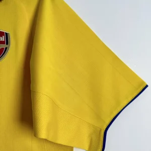 Join the Invincibles’ magical 2003/04 unbeaten Premier League campaign with Arsenal’s distinctive Away Jersey from Nike, worn during their record-breaking 49-game streak under Arsène Wenger. The bright yellow base pops with navy blue accents on the crew neck collar, sleeve cuffs, and Nike swoosh, paired with the classic cannon crest embroidered on the left chest opposite the Nike logo for quintessential Highbury elegance. Made from 100% polyester Dri-FIT fabric with strategic mesh ventilation panels, it delivers early 2000s moisture-wicking performance perfect for European nights and title celebrations.