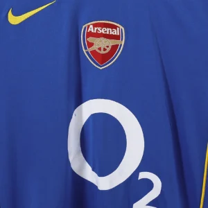 Celebrate a legendary era of Arsenal football with the 2004/05 Away Jersey, a vibrant Nike kit worn during the club’s final season at Highbury. This iconic jersey features a bold blue base complemented by yellow and red trim, creating a bold and striking look that captures the spirit of the Invincibles era.
