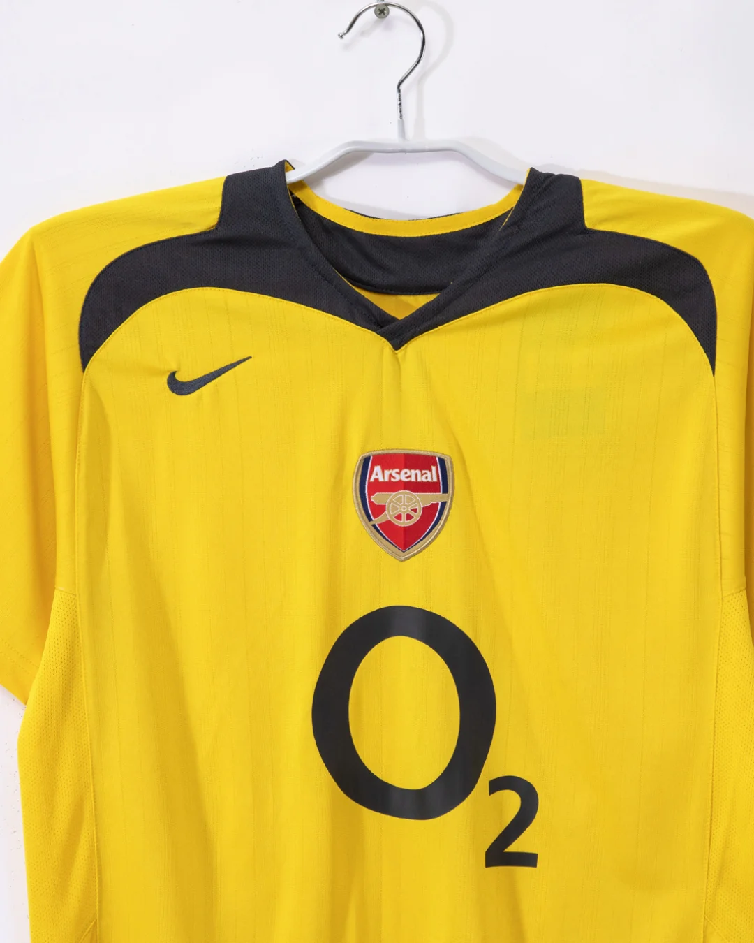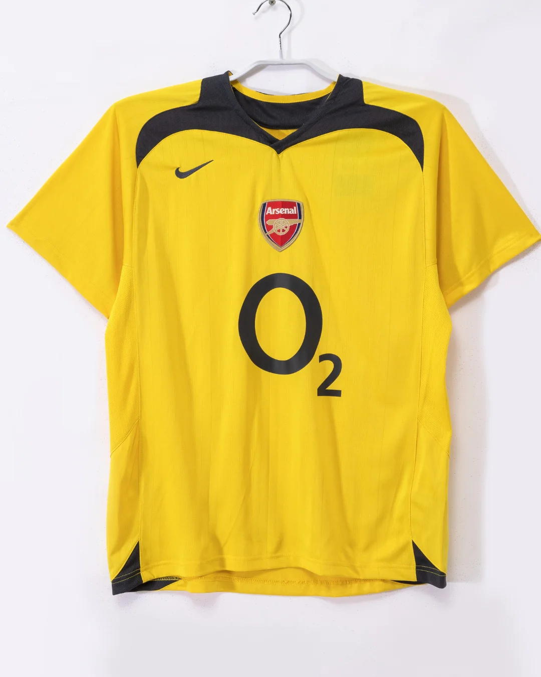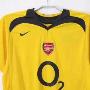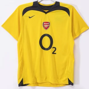 Celebrate a pivotal season with the Arsenal 2006/07 Away Jersey, a bold and dynamic kit from Nike featuring a bright yellow base contrasted by dark navy blue detailing. This vibrant colorway made it one of Arsenal’s most striking away kits, symbolizing the club’s heritage.