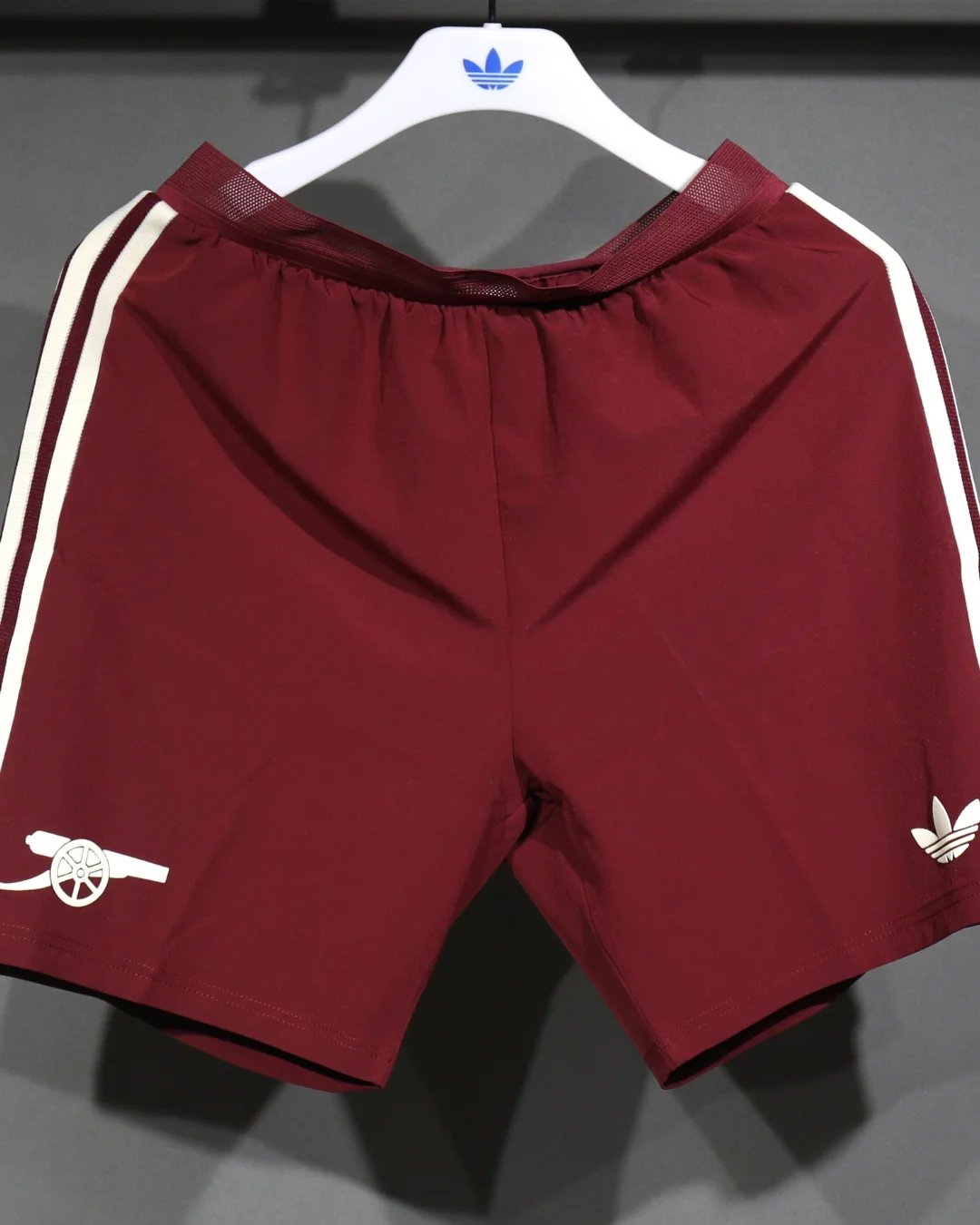 Support the Gunners in true style with the Arsenal 25/26 Third Authentic Shorts, part of the adidas Originals collection that pays homage to the club’s storied history. This short features a Burgundy base with white detailing, inspired by the art deco design of the iconic Highbury stadium and a nod to the legendary 2007/08 away kit.