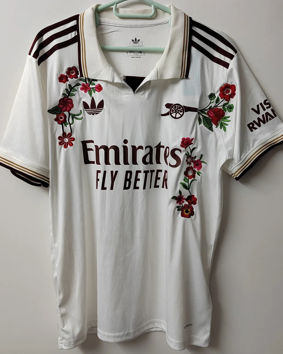 Each embroidered jersey is crafted using the original floral-stitch style pioneered by TheFootballGal, a globally loved creative twist on classic kits.