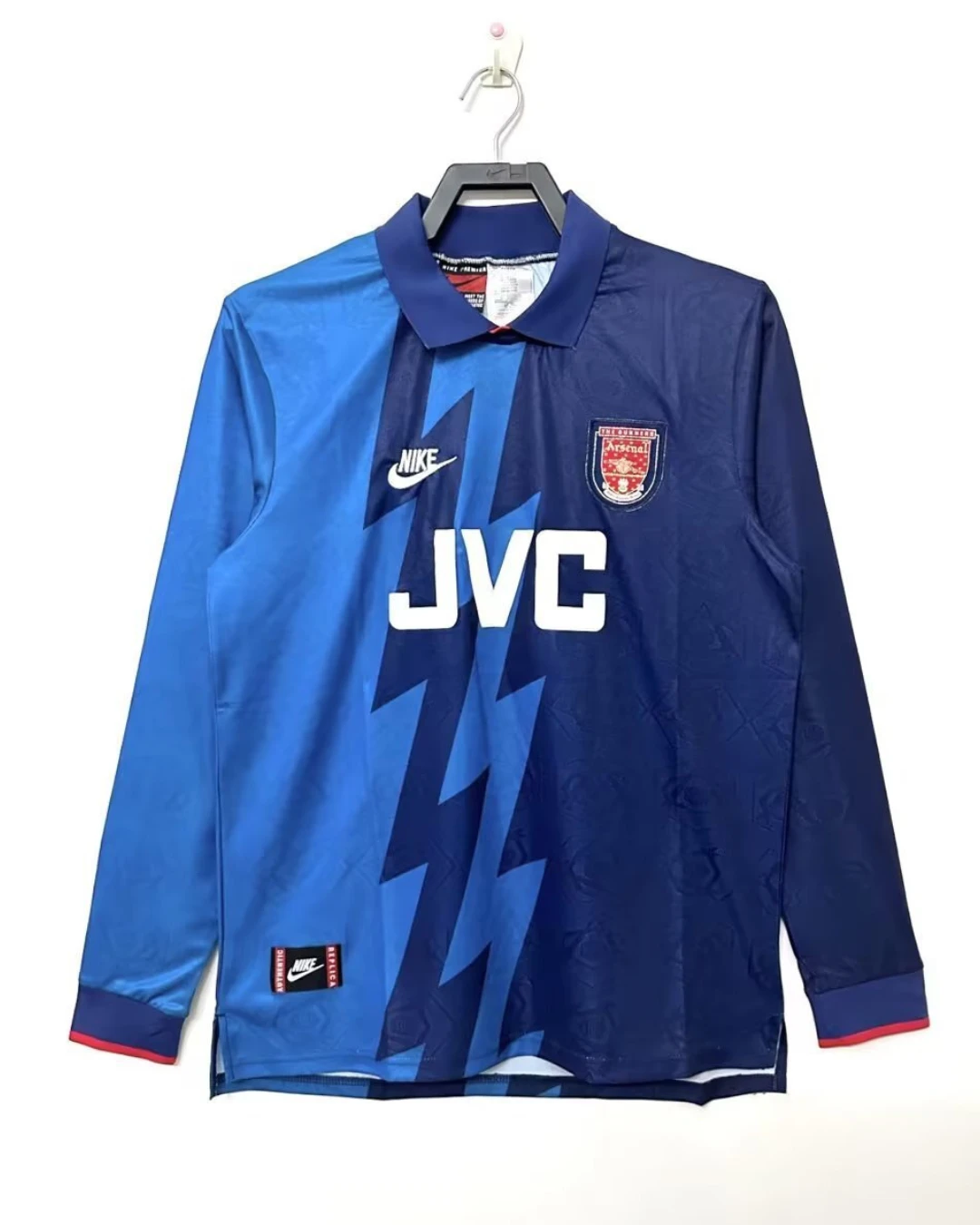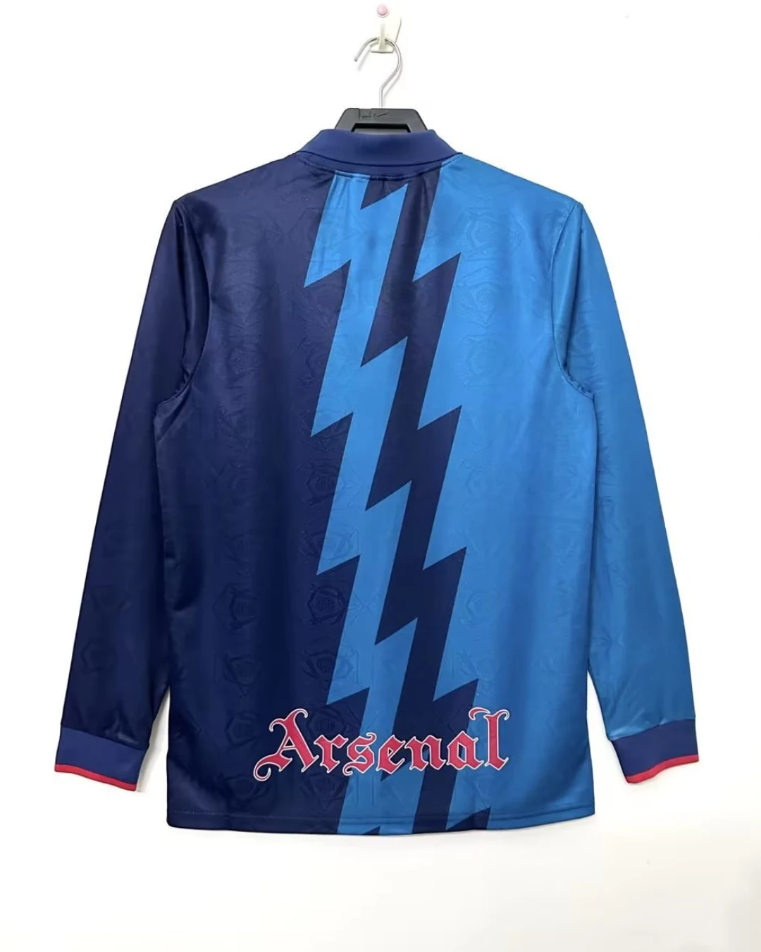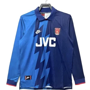 Bring back a standout 90s Arsenal look with the Arsenal 95/96 Away Jersey – Long Sleeve, a bold Nike design from Bruce Rioch’s season in charge. This iconic away shirt is instantly recognisable for its striking blue lightning-bolt graphic, deep navy base, and classic long-sleeve cut, making it one of the most memorable Arsenal change kits of the decade. Worn during the 1995/96 season, this shirt is strongly associated with legends such as Ian Wright, Tony Adams, David Platt, and the debut season of Dennis Bergkamp at Highbury.