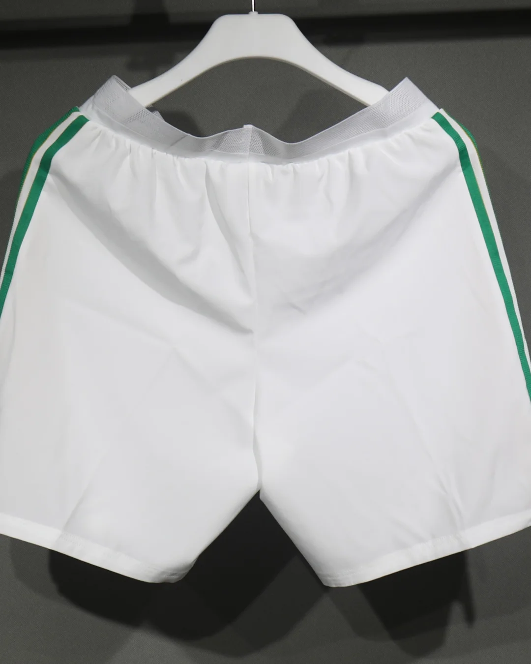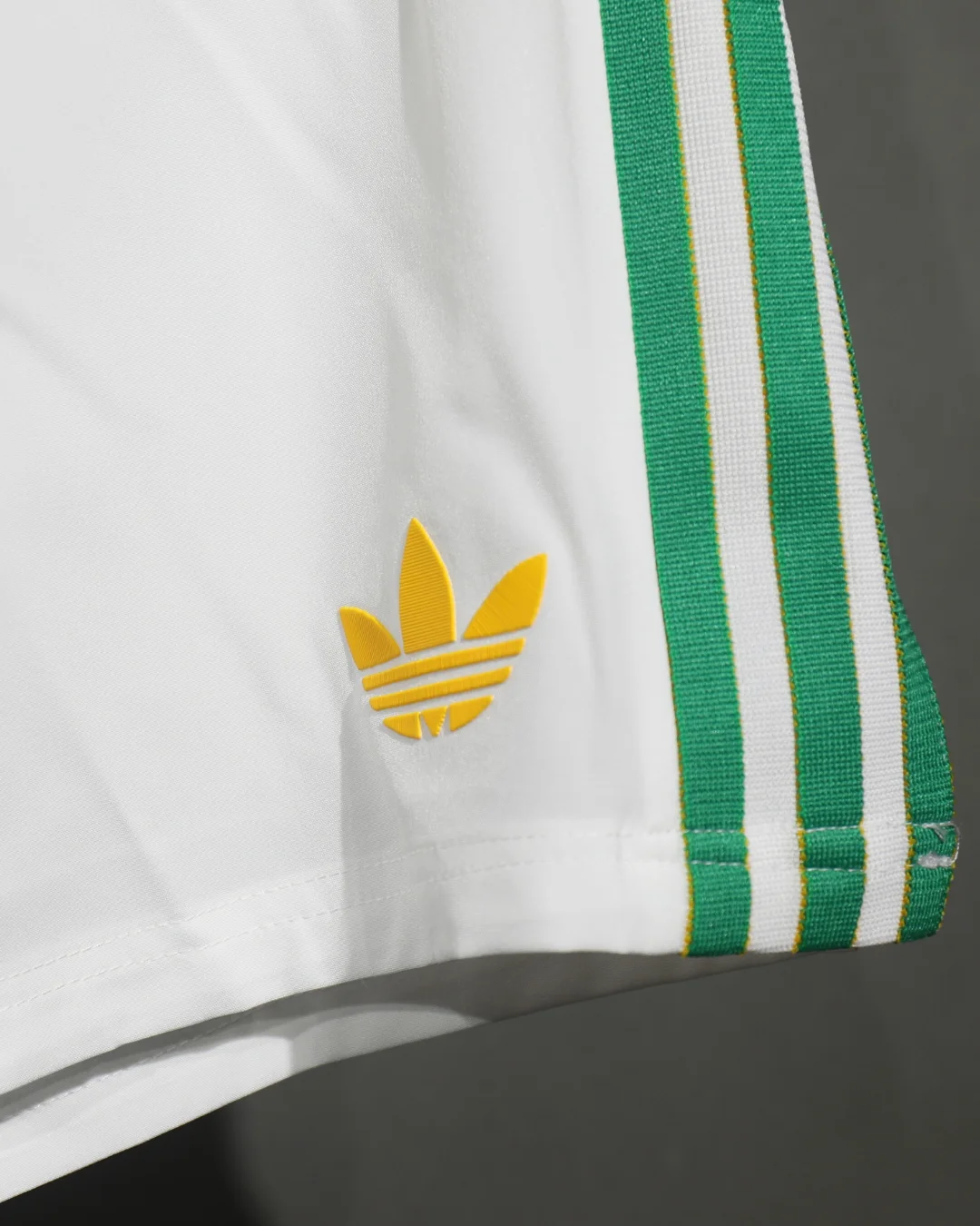Complete your look with the AS Roma 25/26 Third Authentic Shorts, designed by adidas to perfectly complement the fresh and vibrant third kit inspired by the classical Italian gardens of Rome. These shorts feature a clean white base accented by green and yellow trims, reflecting the lush greenery and historic beauty of the Eternal City.