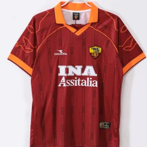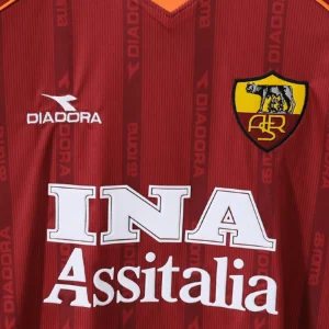Step back into the iconic 1999/2000 season with the AS Roma 99/00 Home Jersey, a timeless classic designed by Diadora that symbolizes the pride and passion of one of Italy’s most beloved football clubs. This jersey features the traditional deep red base, accented with vibrant orange trim on the collar and sleeves that reflect the club’s heritage and fiery spirit.