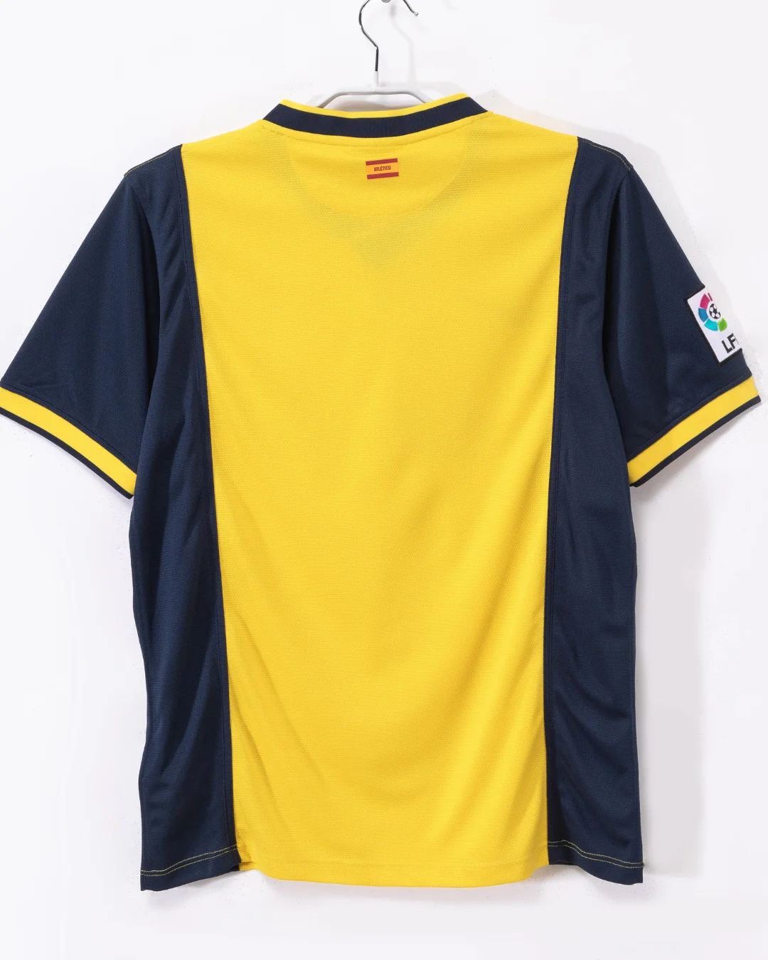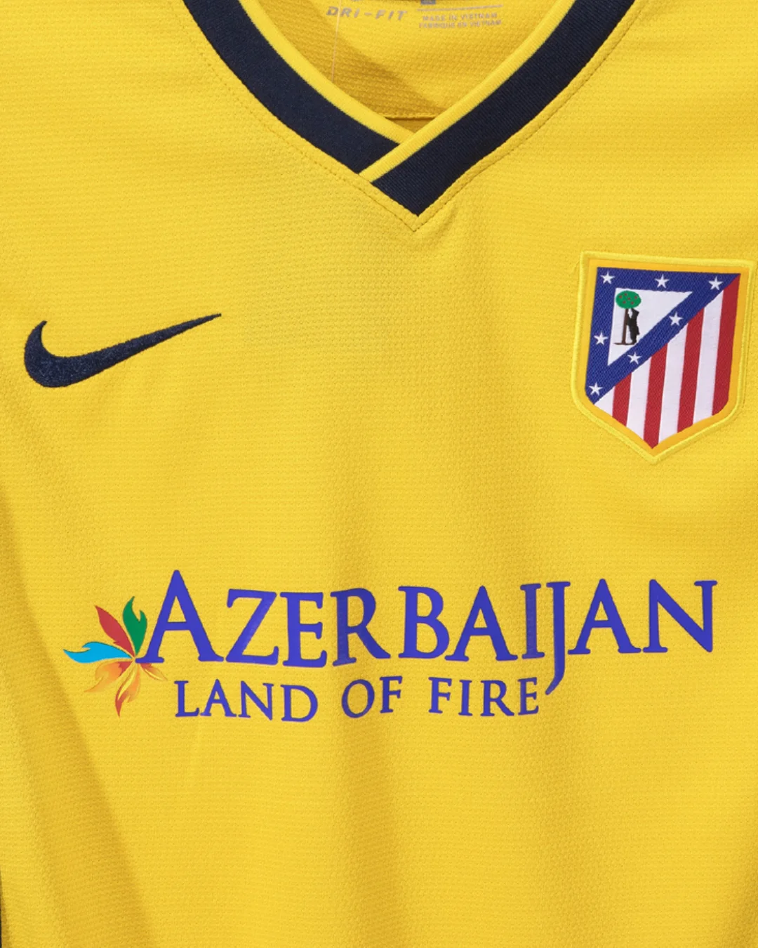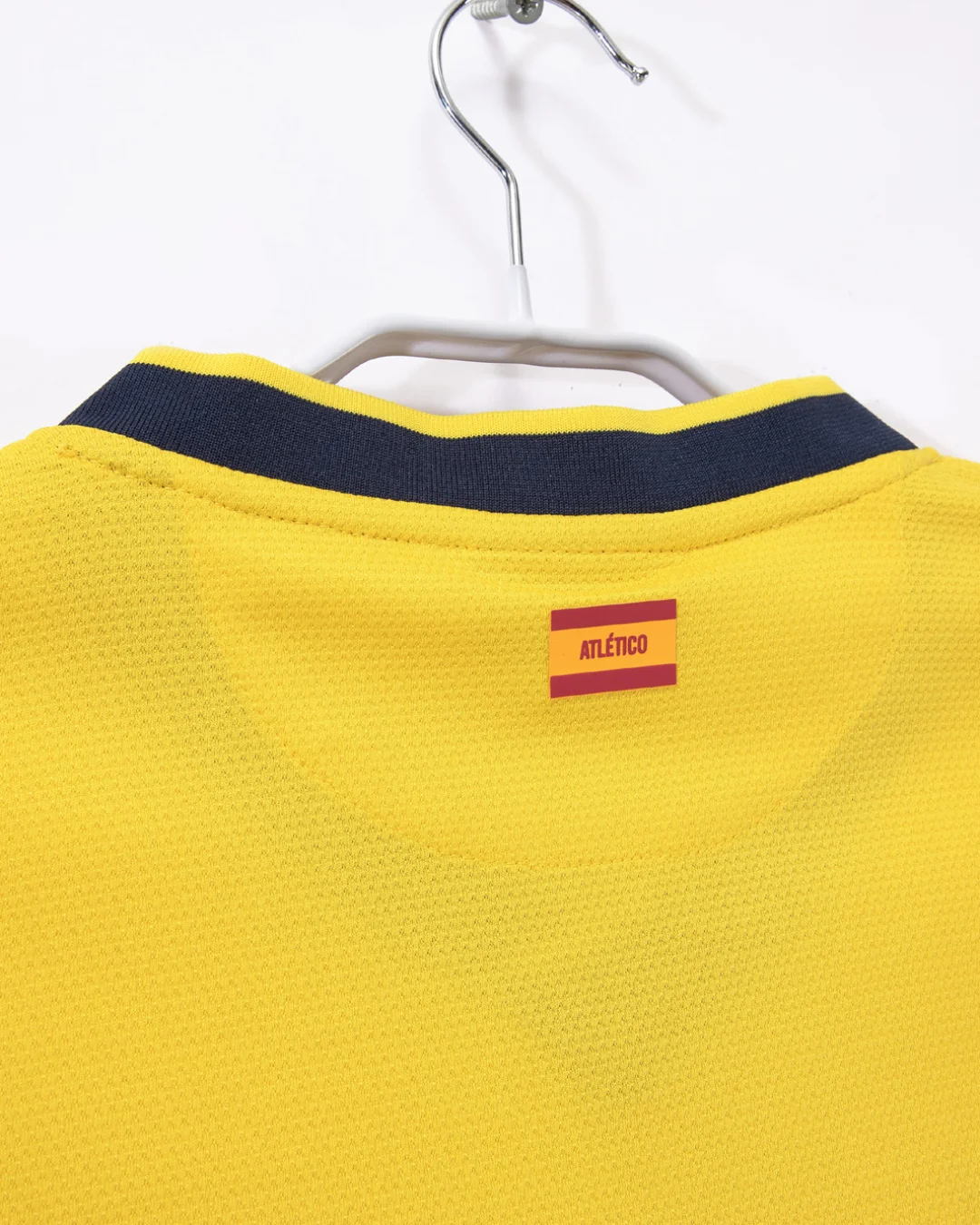 Celebrate one of Atletico Madrid’s most memorable seasons with the 2013/14 Away Jersey, a striking Nike design worn during the campaign that saw the club clinch the La Liga title. The jersey features a bold yellow central panel flanked by deep navy blue stripes down the sides, creating a vibrant and dynamic look that stands out on the pitch.
