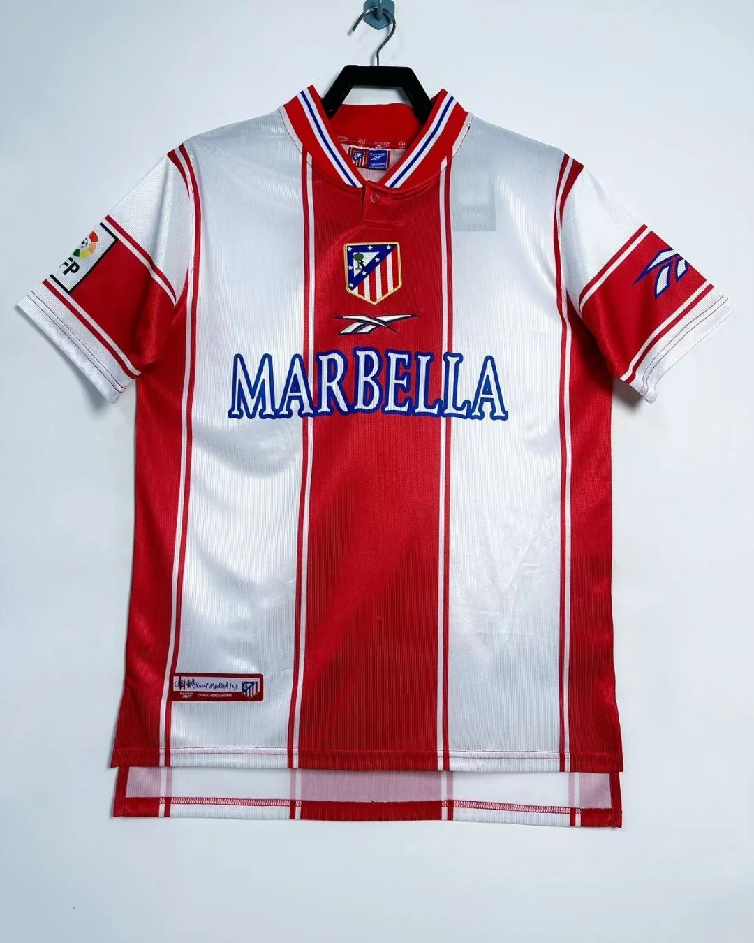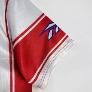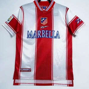 Atlético Madrid’s 1999/00 Home Jersey embodies the club’s passionate identity during a tumultuous season, featuring bold red-and-white vertical stripes with a distinctive polo collar and Reebok branding. Manufactured by Reebok, this retro replica captures the era’s authentic polyester construction, embroidered badges, and Marbella sponsor print, perfect for fans honoring the Colchoneros’ heritage.