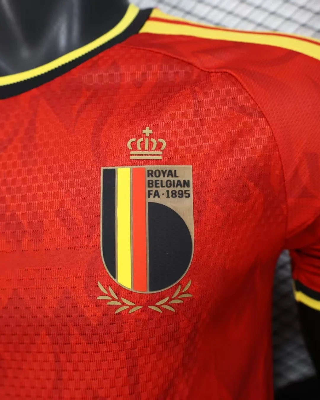 Heat-pressed Belgian Football Association crest and Adidas logo