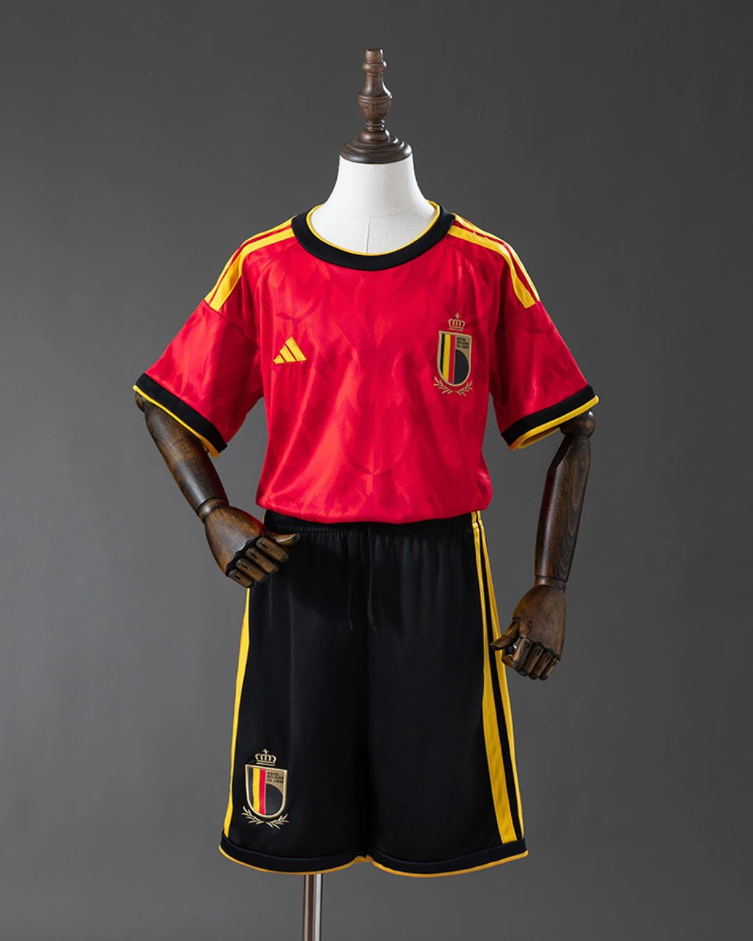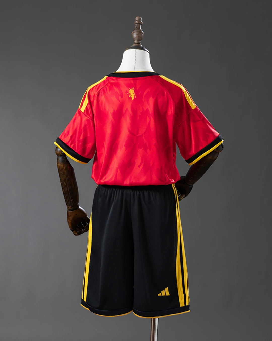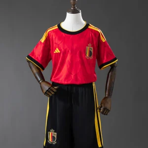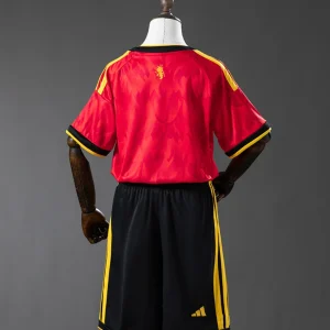 The Belgium Kids 2026 WC Home jersey brings the Red Devils’ fearless identity to life with a deep red base, bold gold detailing, and black accents inspired by flames and devil motifs. The design also draws from stained-glass-style graphics and Gothic architecture references, giving the shirt a dramatic, premium look for young Belgium fans. Built for active kids, this adidas youth jersey uses 100% recycled polyester with CLIMACOOL technology to help keep them cool, dry, and comfortable during training, play, or matchday support.