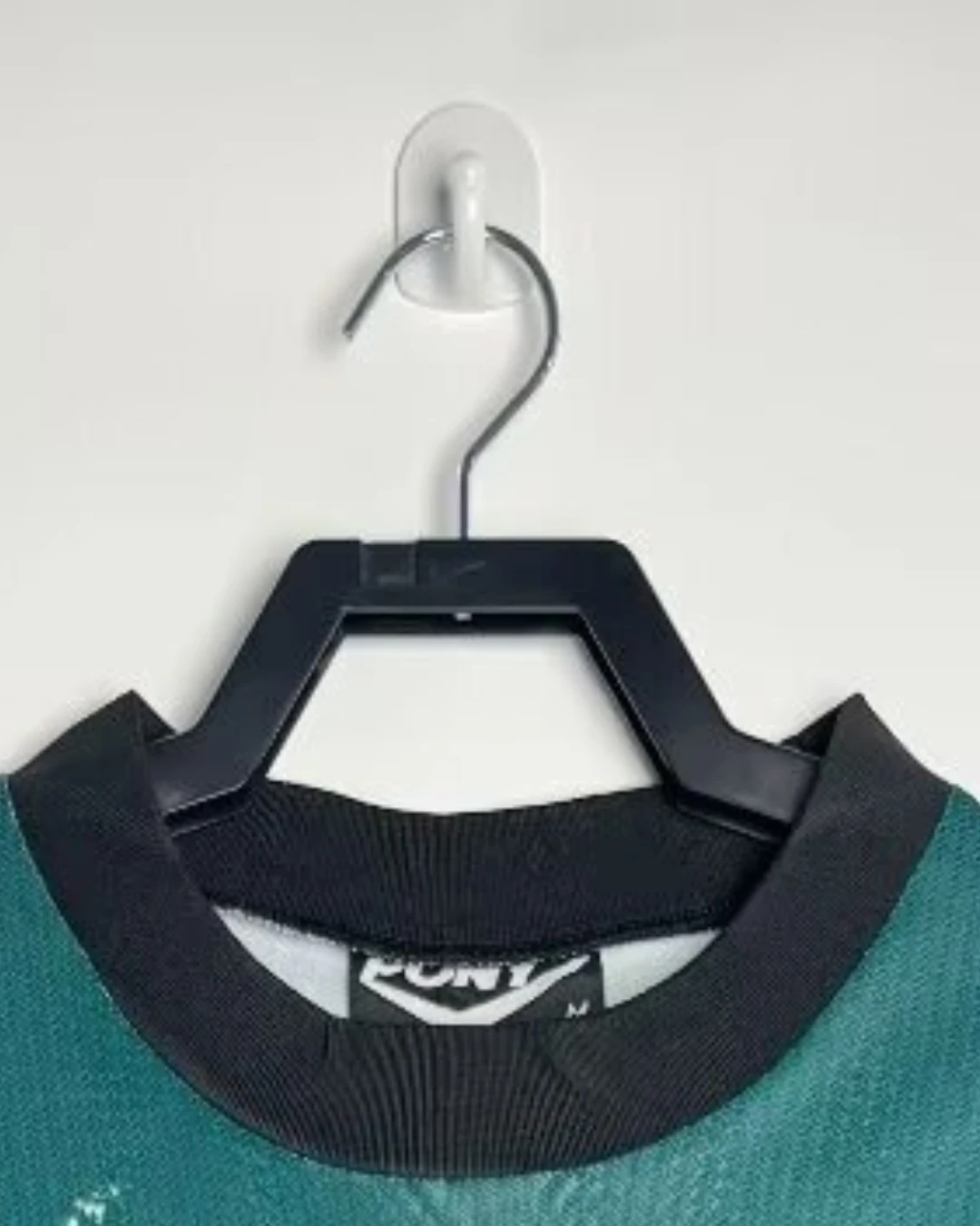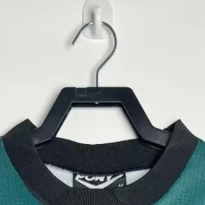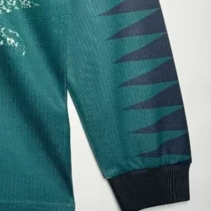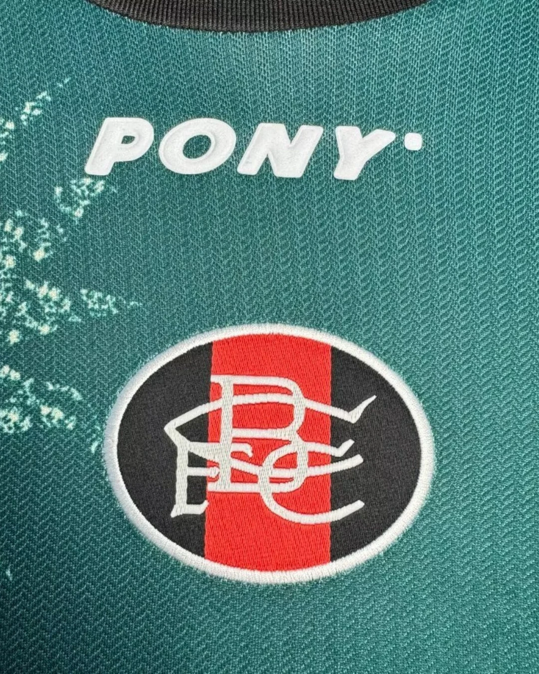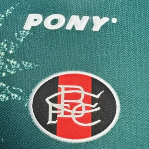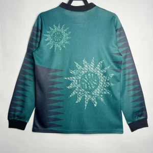 Birmingham City’s 1996/97 Long Sleeve Goalkeeper Jersey from Pony equipped keepers Ian Bennett and Kevin Poole during Barry Fry’s First Division playoff push at St Andrew’s, providing cold-weather protection and high visibility for nighttime fixtures and winter promotion battles. The teal base features white sun graphics and black geometric patterns on the sleeves and sides, extended ribbed long cuffs for glove compatibility, prominent “AUTO WINDSCREENS” sponsor across the chest, embroidered BCFC crest, and Pony logo, specialist 90s keeper design prioritizing shot-stopping performance.