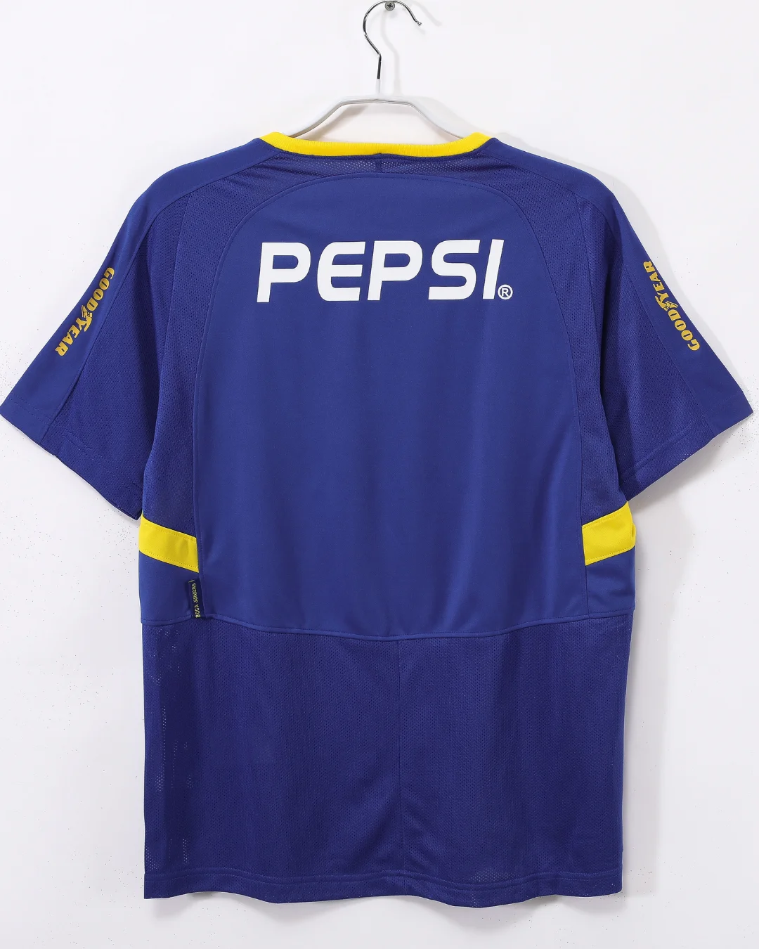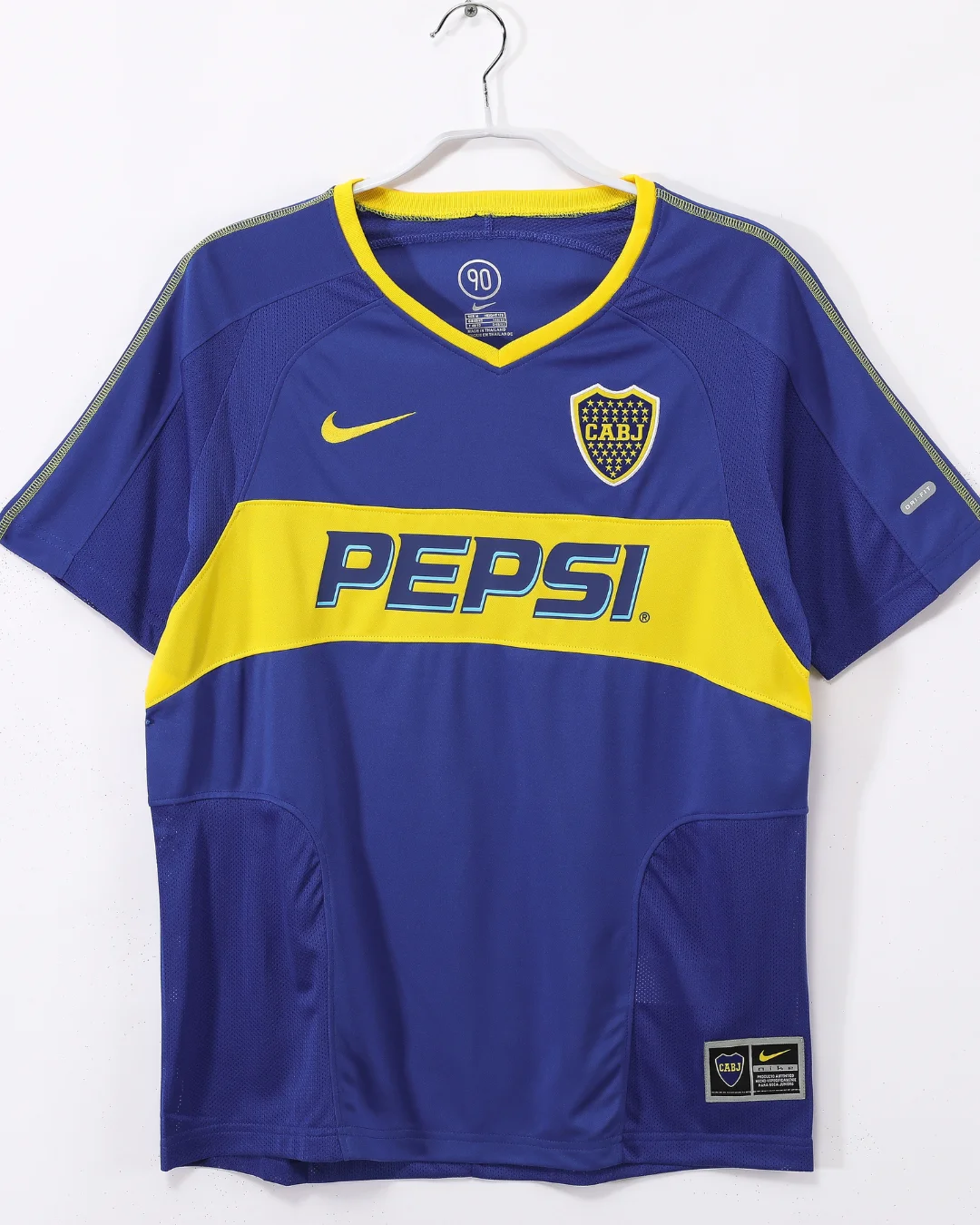 Celebrate the rich heritage of Boca Juniors with the 2003/04 Home Jersey, a classic Nike design that stands out with its vibrant royal blue base and the iconic bold yellow diagonal sash crossing the chest. This distinctive design pays homage to one of the club’s memorable eras, capturing the fierce spirit and tradition of Los Xeneizes.