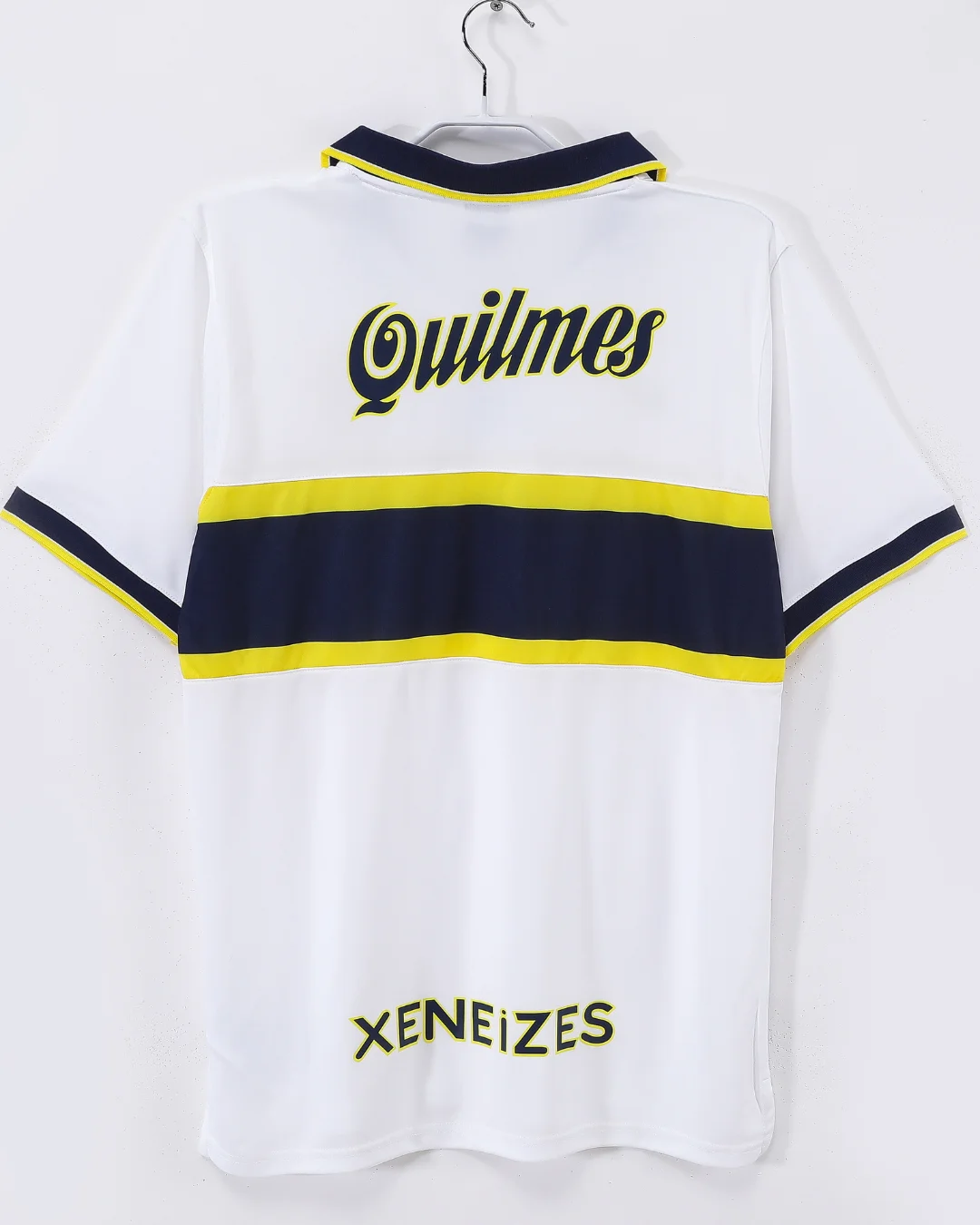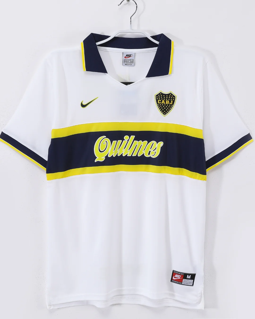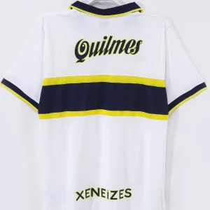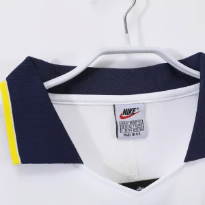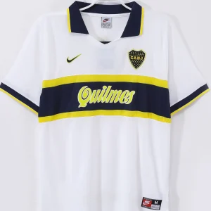Celebrate the legendary Boca Juniors with the iconic 1996/97 Away Jersey, a classic Nike design that captures the passion and spirit of one of South America’s most revered football clubs. This jersey features a crisp white base with a bold yellow and navy horizontal band across the chest, embodying Boca Juniors’ traditional colors with a striking contrast that commands attention on the pitch.