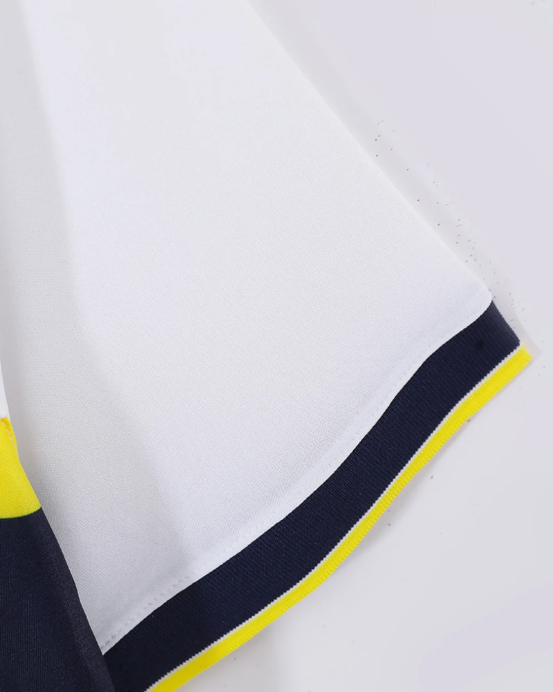 White base with bold yellow and navy chest band