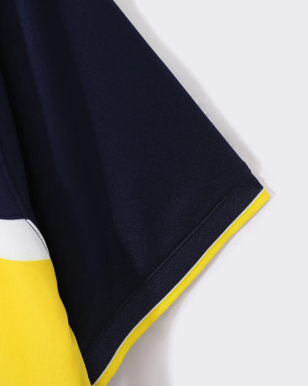 Woven team crest and ribbed collar and cuffs with vintage yellow detailing
