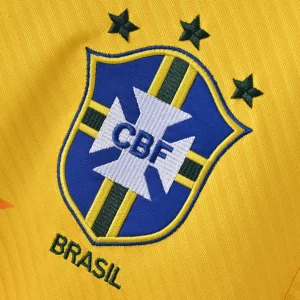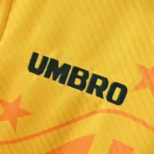 The Brazil 94/96 Home Jersey is a legendary football shirt that symbolizes Brazil’s triumphant campaign at the 1994 FIFA World Cup, where the Seleção clinched their fourth World Cup title. This classic yellow Umbro kit features the vibrant traditional yellow base synonymous with Brazilian football, accented by green trim around the V-neck collar and sleeve cuffs, embodying the iconic “Canarinho” look.