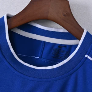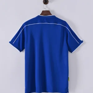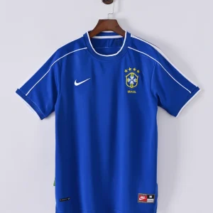 Celebrate one of the most iconic eras in Brazilian football history with the Brazil 1998 Away Jersey, famously worn during the FIFA World Cup in France. This classic jersey features a vibrant blue base with crisp white accents, reflecting the national colors in a bold and elegant design.