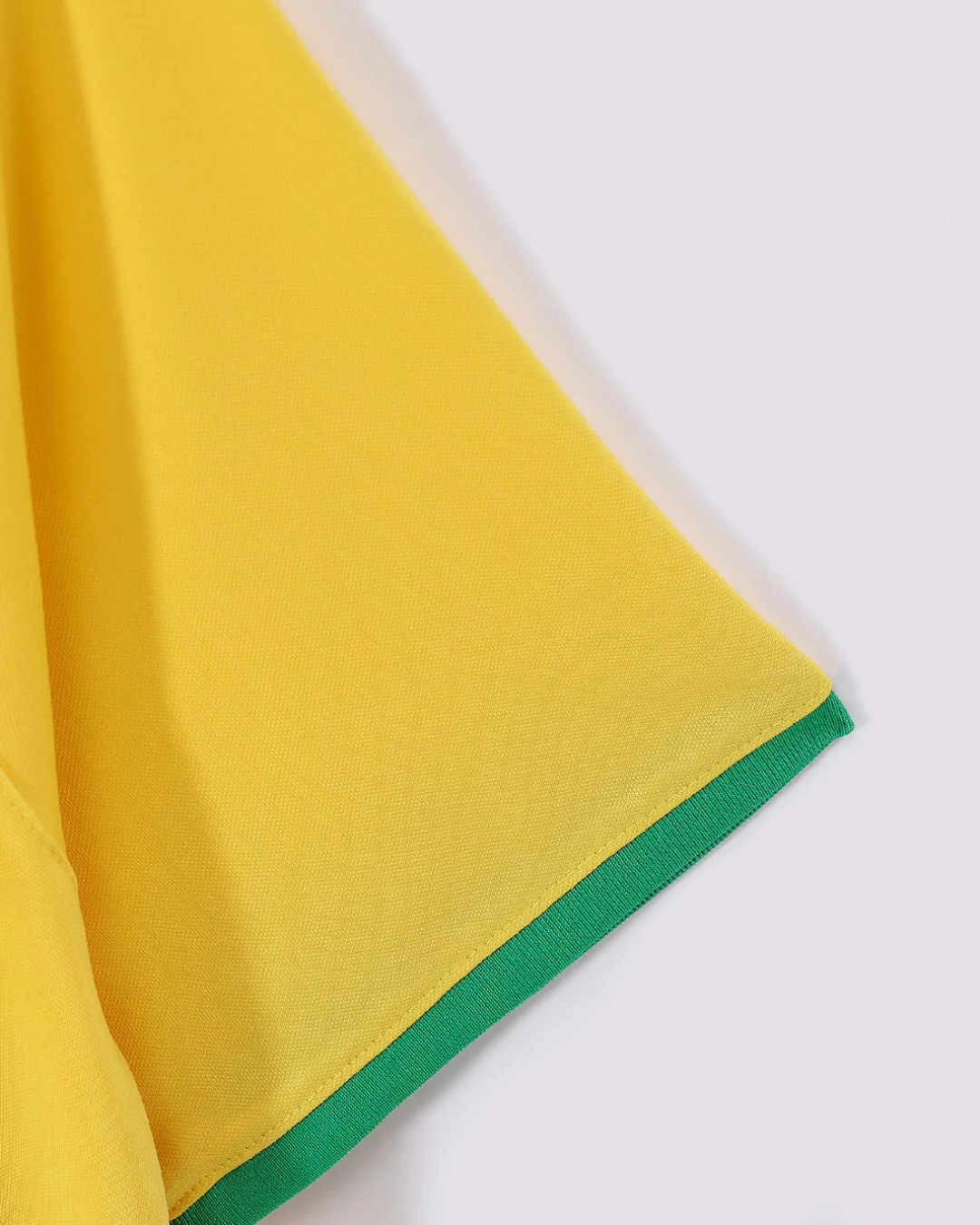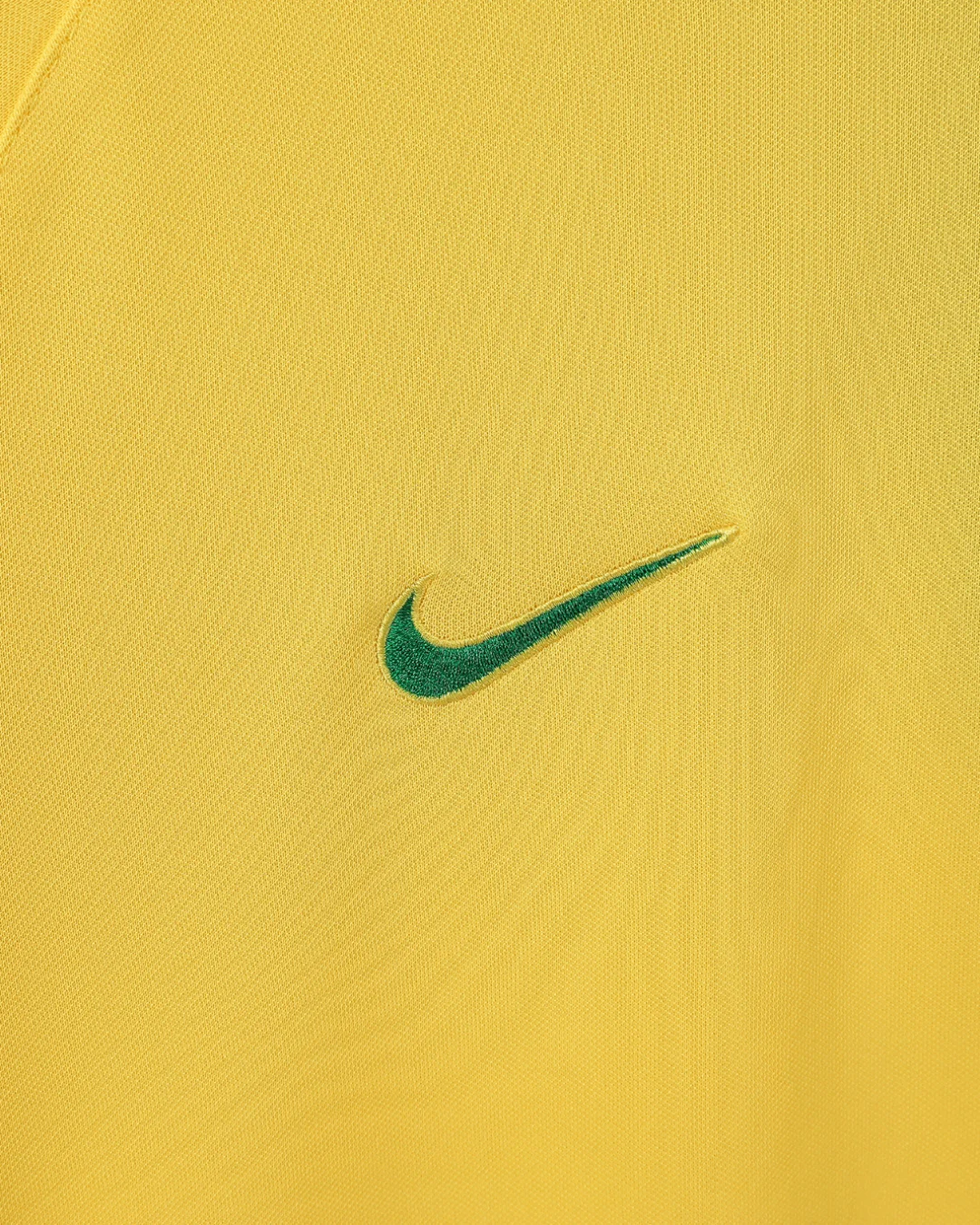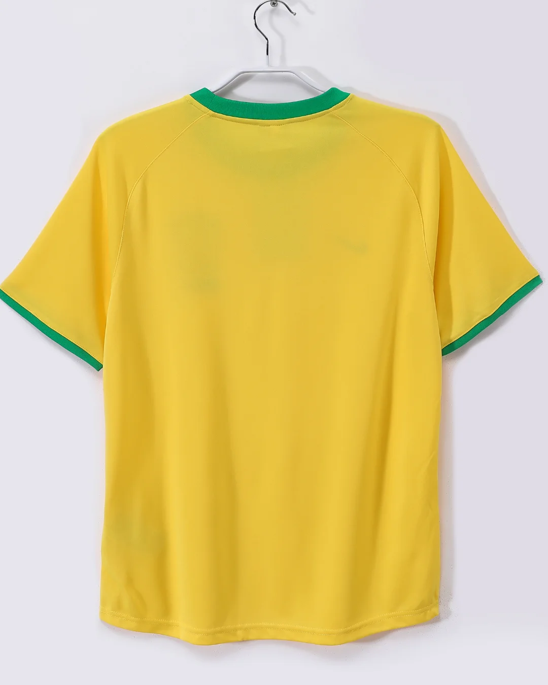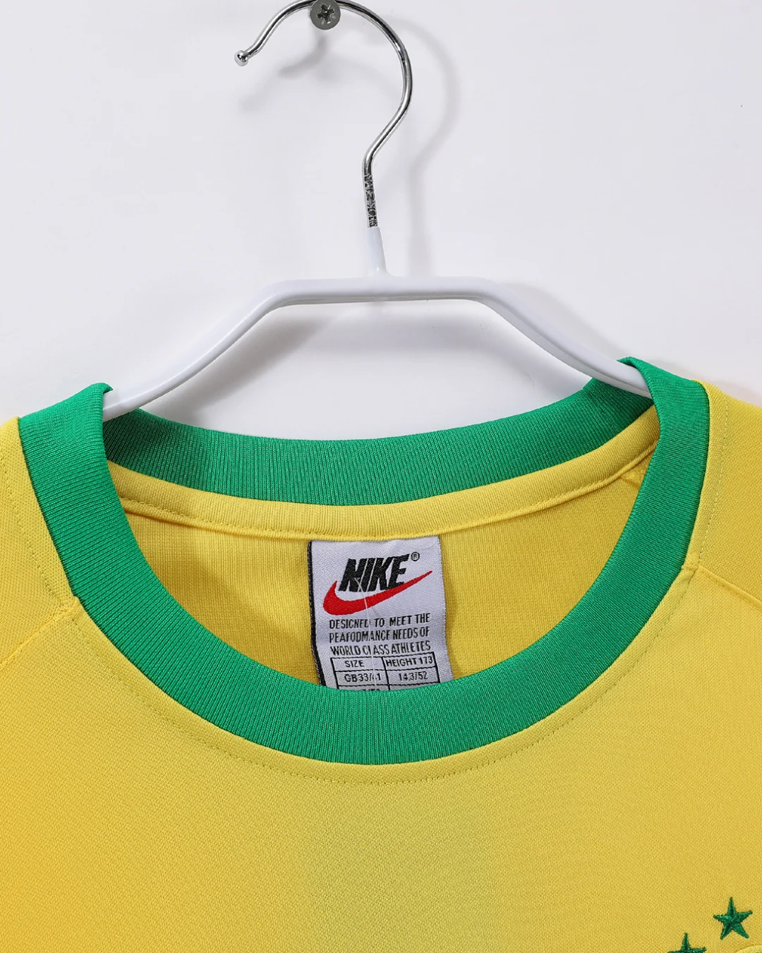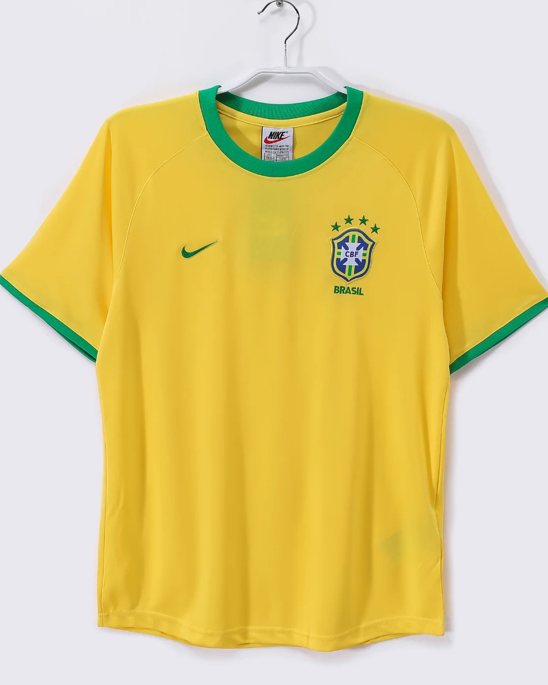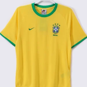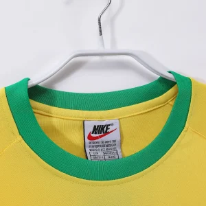 Celebrate the spirit of the Seleção with the iconic Brazil 2000 Home Jersey by Nike, a design that reflects the flair and passion of one of the world’s greatest footballing nations. This jersey features Brazil’s classic vibrant yellow base with green trim on the collar and sleeves, embodying the colors that have become synonymous with Brazilian football pride.