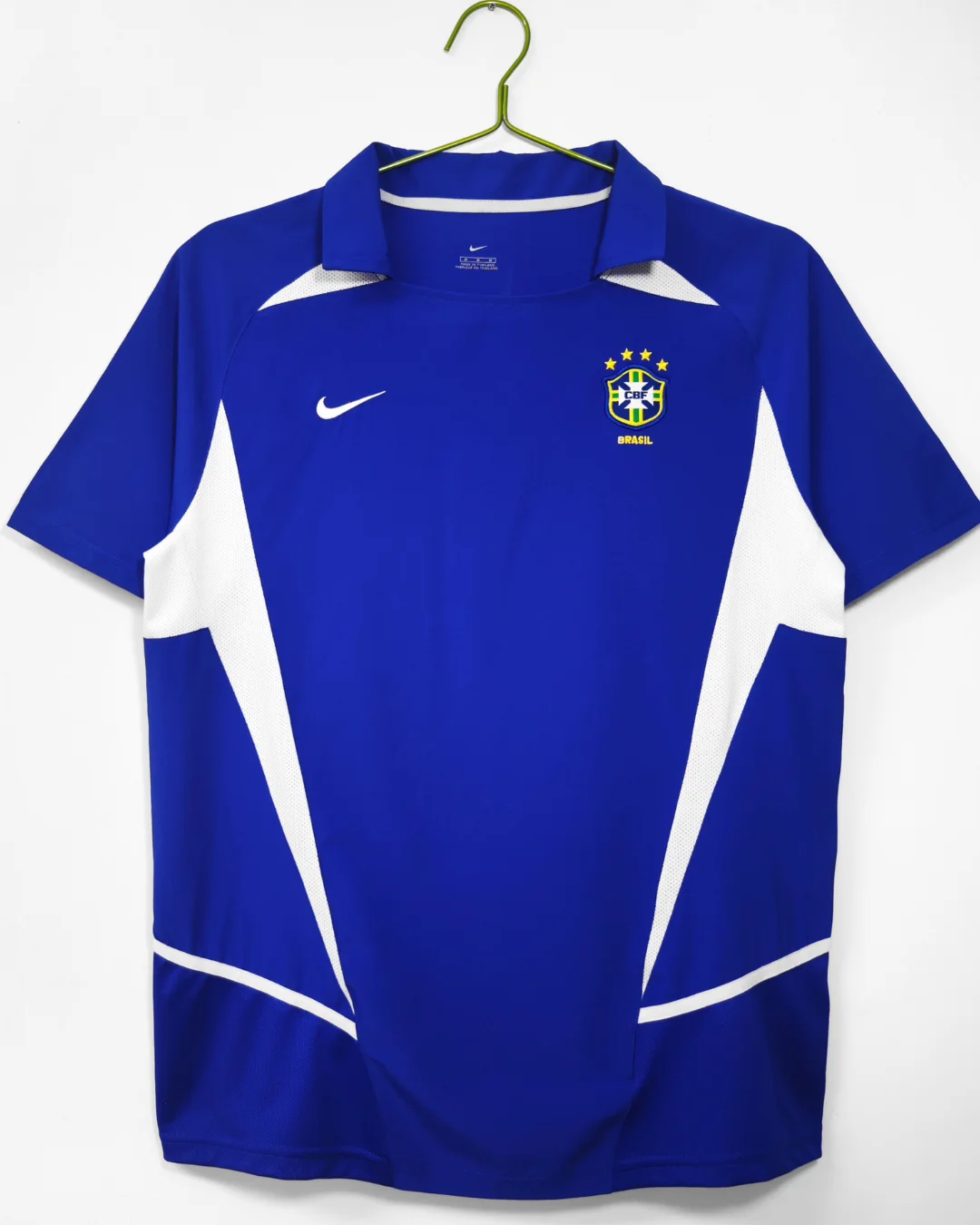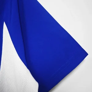 Step into the legendary style of Brazil’s 2002 World Cup triumph with this iconic away jersey. Crafted by Nike, the jersey features a rich royal blue base color with white mesh panels on the sides and lower back for enhanced breathability and comfort. Designed with Nike Cool Motion fabric made from 100% polyester, this shirt provides lightweight performance and durability.