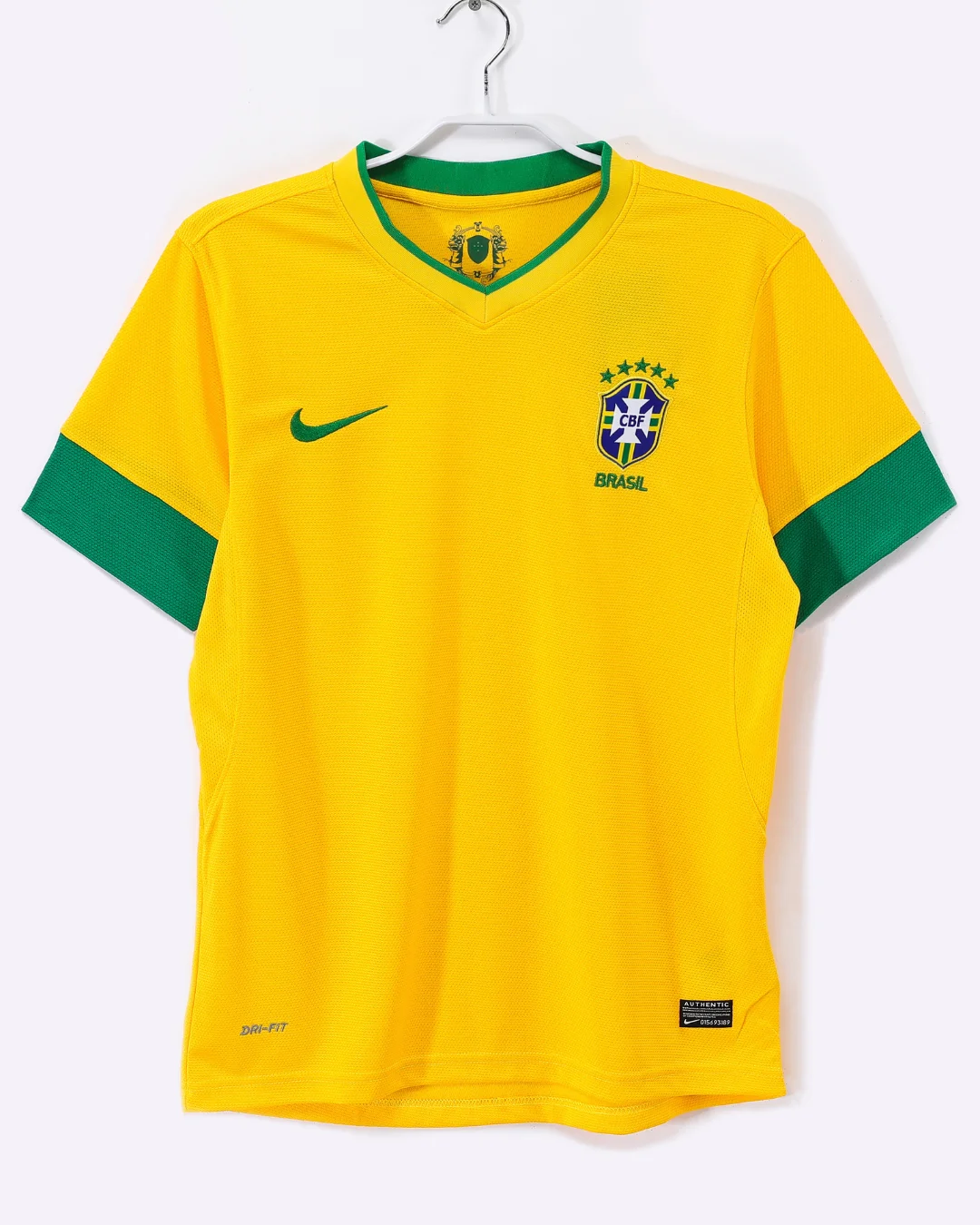 Celebrate Brazil’s legendary footballing spirit with the 2012 Home Jersey by Nike, worn during a captivating era featuring stars like Neymar Jr., Dani Alves, and Kaká. This jersey embodies the passion, elegance, and tradition of the Seleção, representing Brazil’s iconic green and yellow colors with modern style and comfort. Featuring a vibrant yellow base with bold green accents on the collar and cuffs, the design pays homage to Brazil’s rich football history.