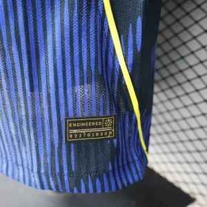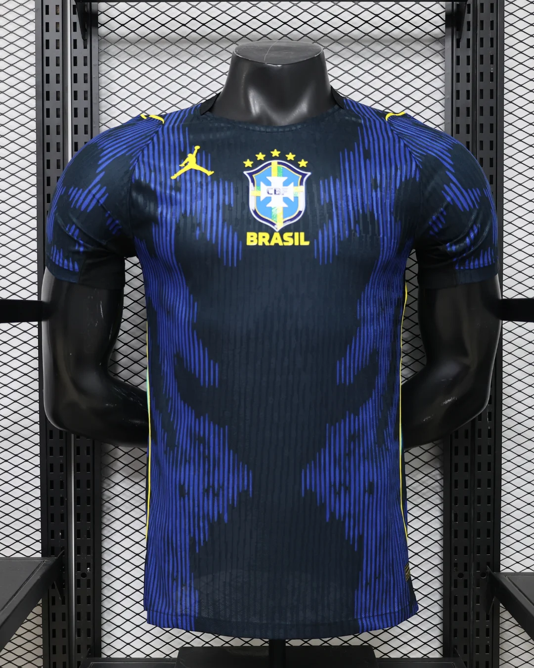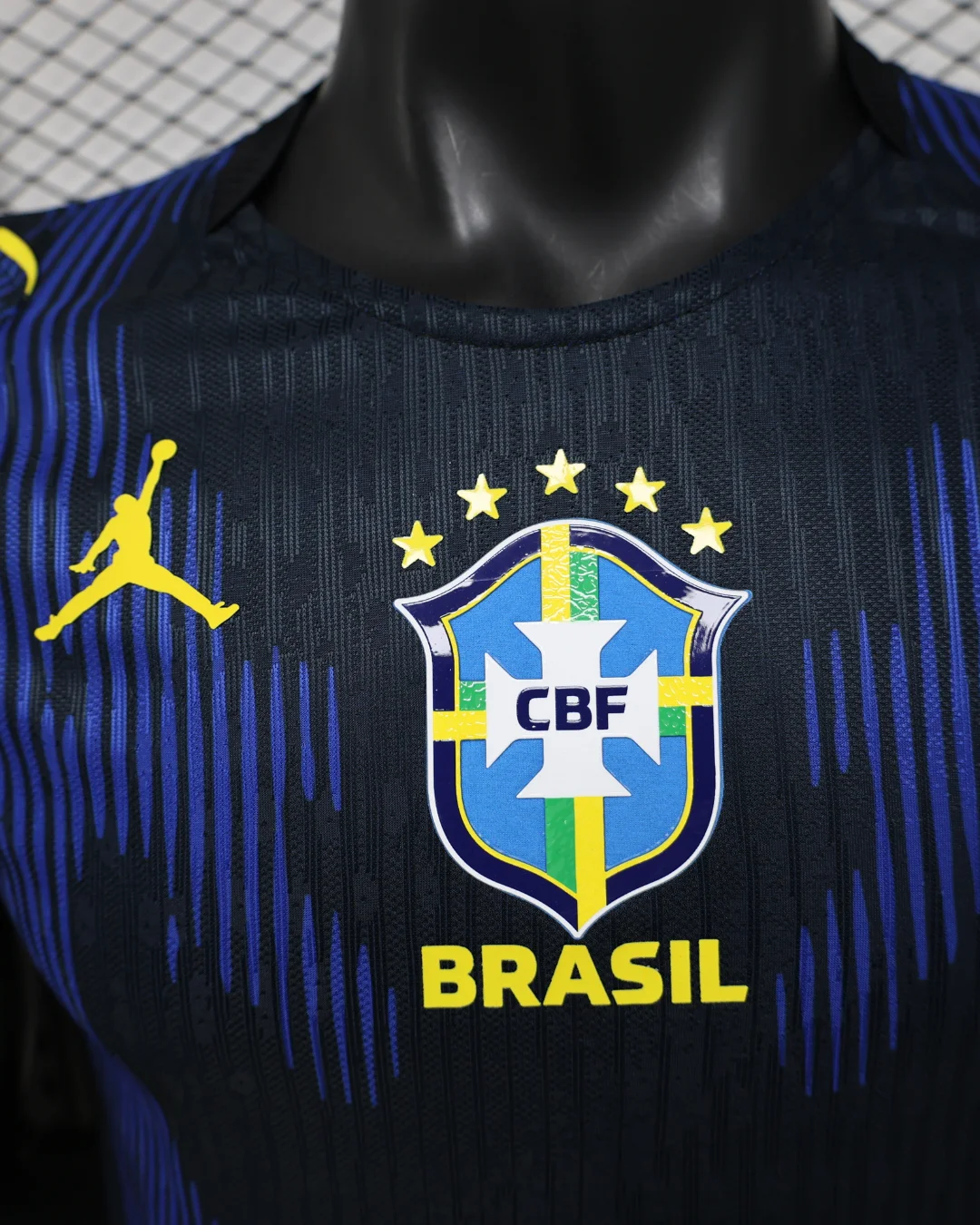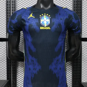 Brazil’s groundbreaking 2026 World Cup Away Authentic Jersey marks a historic Jordan Brand collaboration, the first time the Jumpman logo replaces Nike’s Swoosh on a Seleção kit, featuring a striking Royal Blue base with black detailing inspired by the vibrant poison dart frog from South American rainforests, subtle Jordan elephant print pattern across the front chest, vibrant yellow Jumpman and CBF crest accents, aqua side panels for breathability and athletic contrast. Perfect for young Seleção fans, this authentic player-issue replica uses advanced Aero-Fit technology with lightweight, stretchy construction for elite performance, embroidered badges with 5-star CBF detailing, contoured fit with strategic mesh zones.