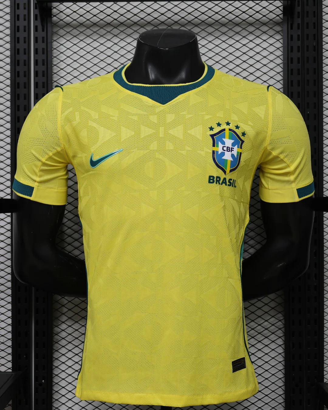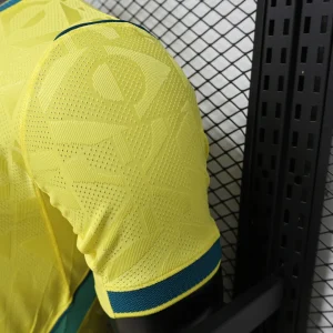 Fuel the Seleção’s samba-infused World Cup dominance with the Brazil 2026 Home Authentic Jersey from Nike. Featuring the iconic ‘Yellow Canary’ base inspired by the legendary 1970 World Cup winning kit, it showcases Light Mint and Geode Teal for dynamic detailing alongside a distorted geometric Brazilian flag pattern and innovative rounded collar with front notch honoring Pelé’s golden era. Engineered from 100% recycled polyester with Nike Aero-FIT technology, this jersey delivers revolutionary breathability through textured knit zones, Dri-FIT moisture-wicking, and slim authentic match fit identical to what the pros wear.