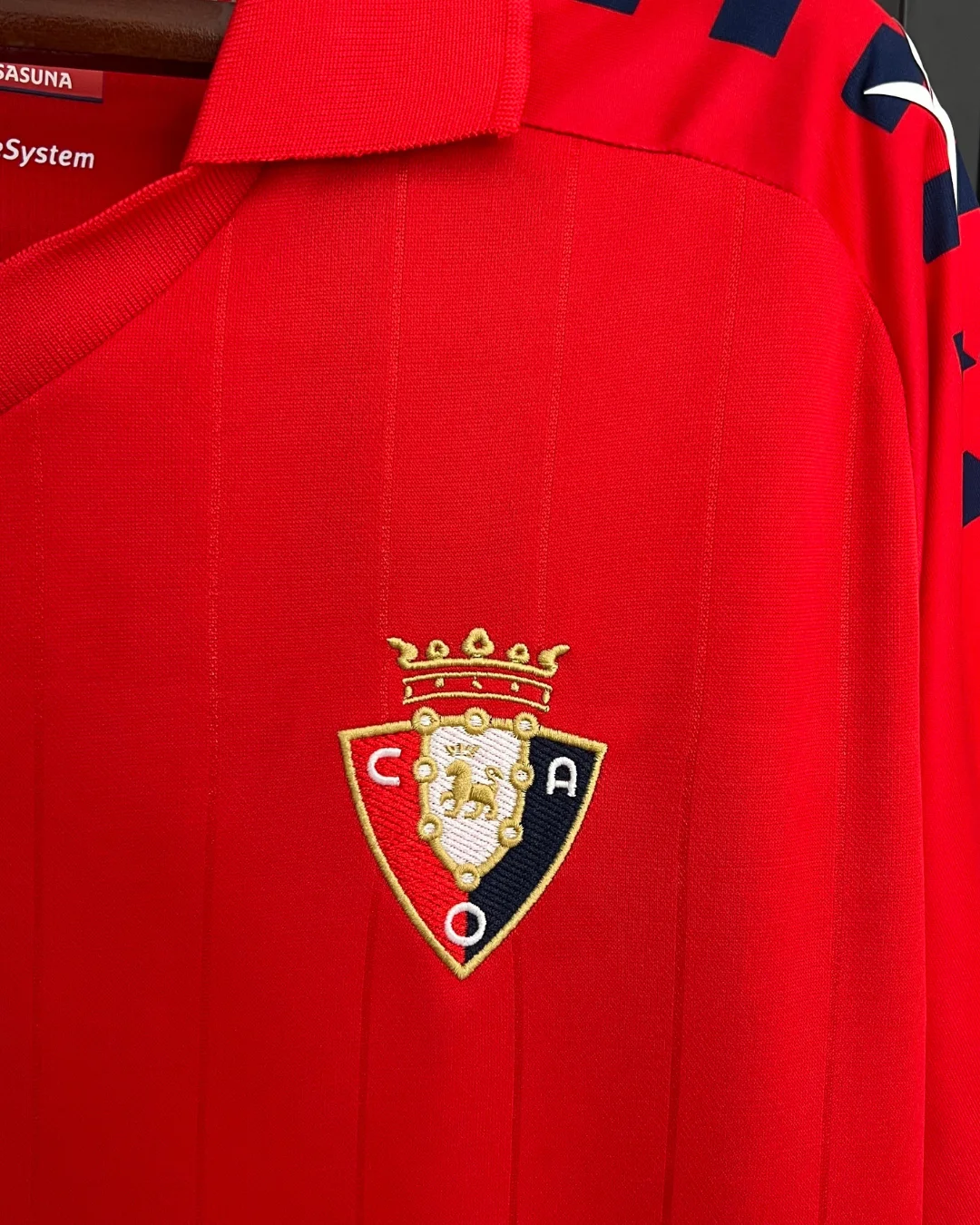 Celebrate the rich European history of CA Osasuna with the Macron 25/26 Home Stadium Jersey, marking the 40th anniversary of the club’s first European campaign in 1985 and memorable UEFA Cup runs in the early ’90s and mid-2000s. This home kit is dominated by Osasuna’s classic deep red color, enhanced by a subtle pinstripe effect that adds modern texture and visual depth.