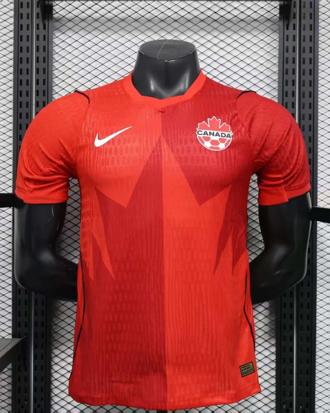 Traditional left-chest Canada Soccer crest and white Swoosh