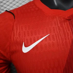Fuel Canada’s historic World Cup hosting quest with the Canada 2026 WC Home Authentic Jersey from Nike. Predominantly vibrant red base rooted in Canadian soccer DNA, it features a stunning split-toned maple leaf as the central symbol, pointing north to signify collective ambition, crafted with tonal patterning across the chest, white Nike Swoosh on the left chest, Canada Soccer crest returned to traditional left positioning, and subtle black detailing on sleeve cuffs and side panels evoking national landscapes and outdoor heritage.
