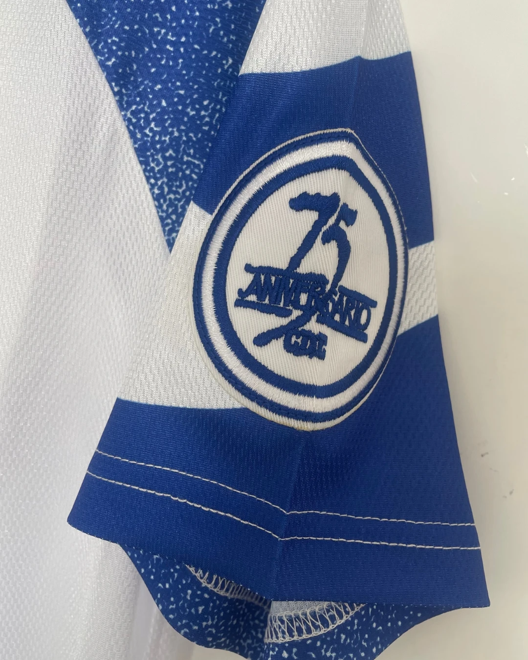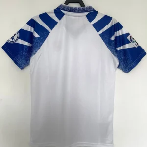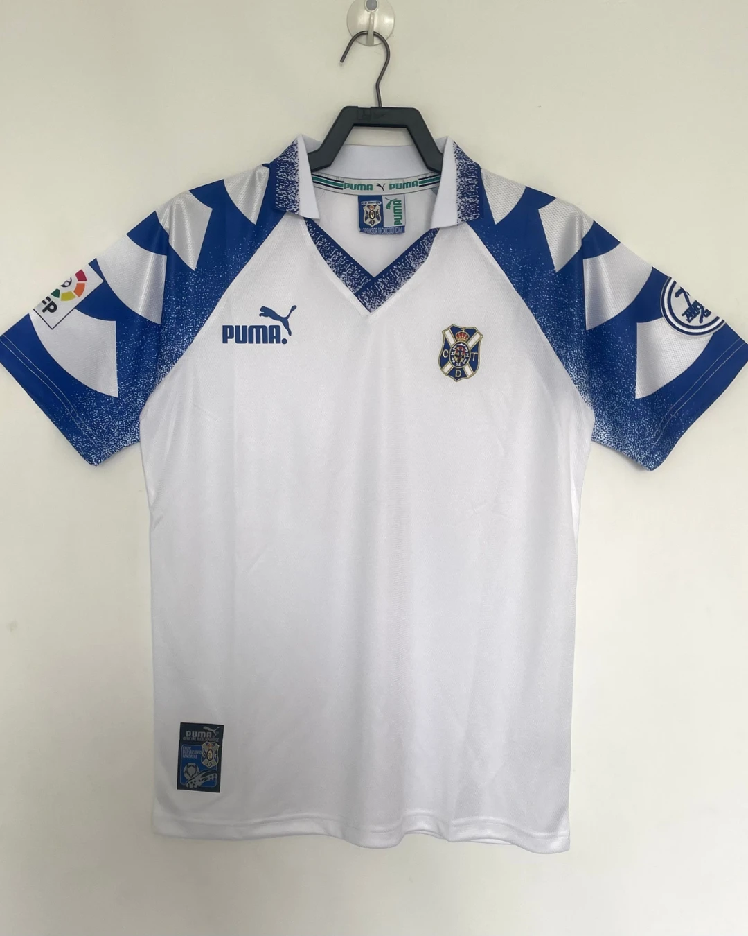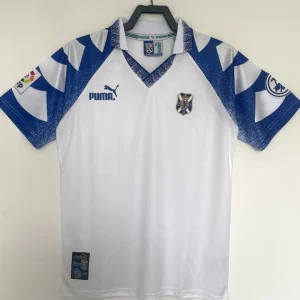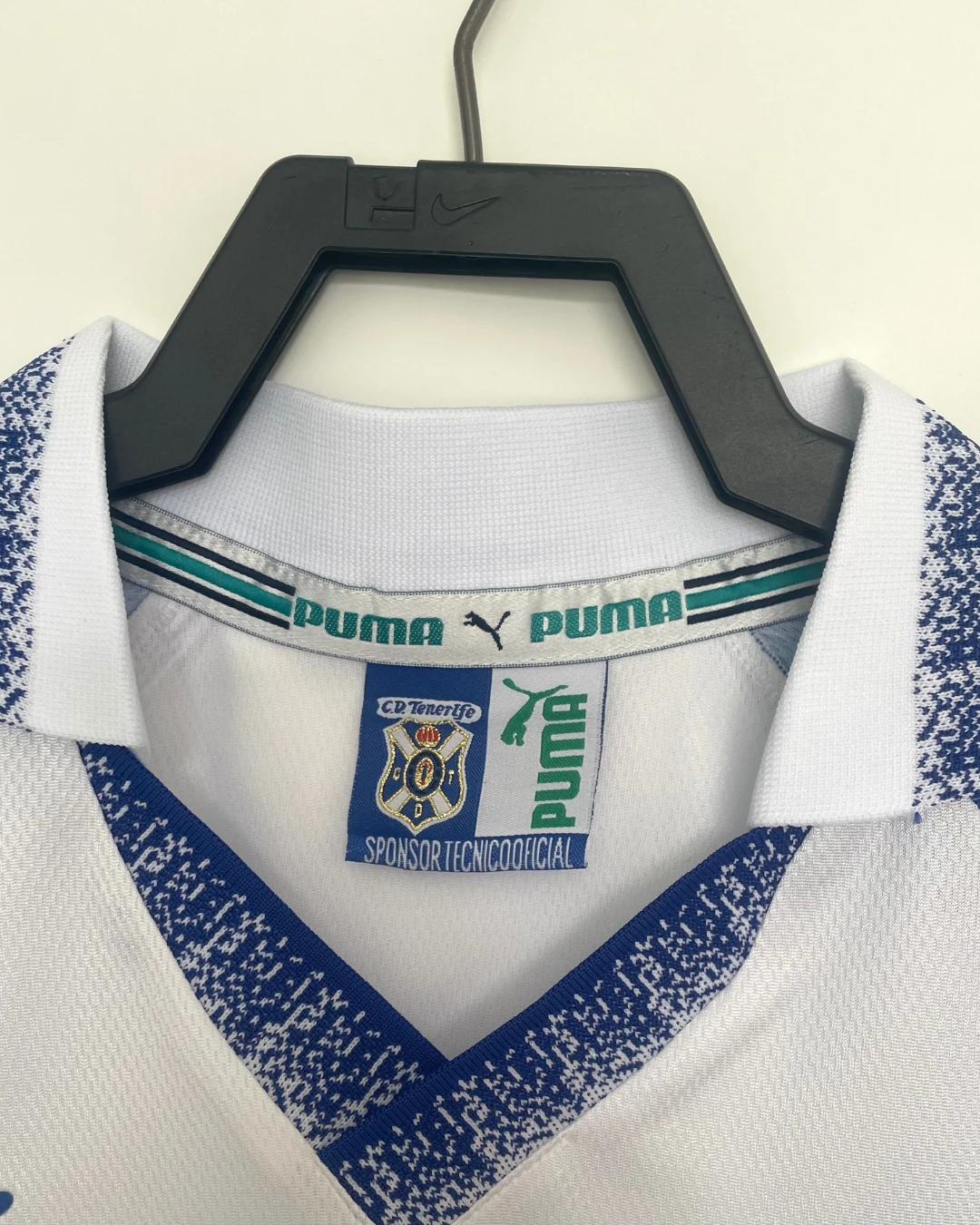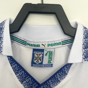 CD Tenerife’s 1997/98 Home Jersey marked their final La Liga season before relegation, powering gritty survival battles at the Heliodoro Rodríguez López under David Amaral, worn by Iván Docaram, Aurelio Gay, and Juani during their passionate Canary Islands campaign. The traditional white base with bold blue accents on the sleeves and collar features the embroidered club crest on the left chest, Puma logo opposite and classic V-neck collar, quintessential late-90s Spanish design celebrating Tenerife’s island identity.