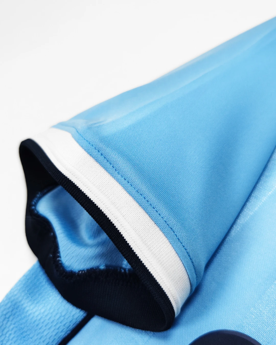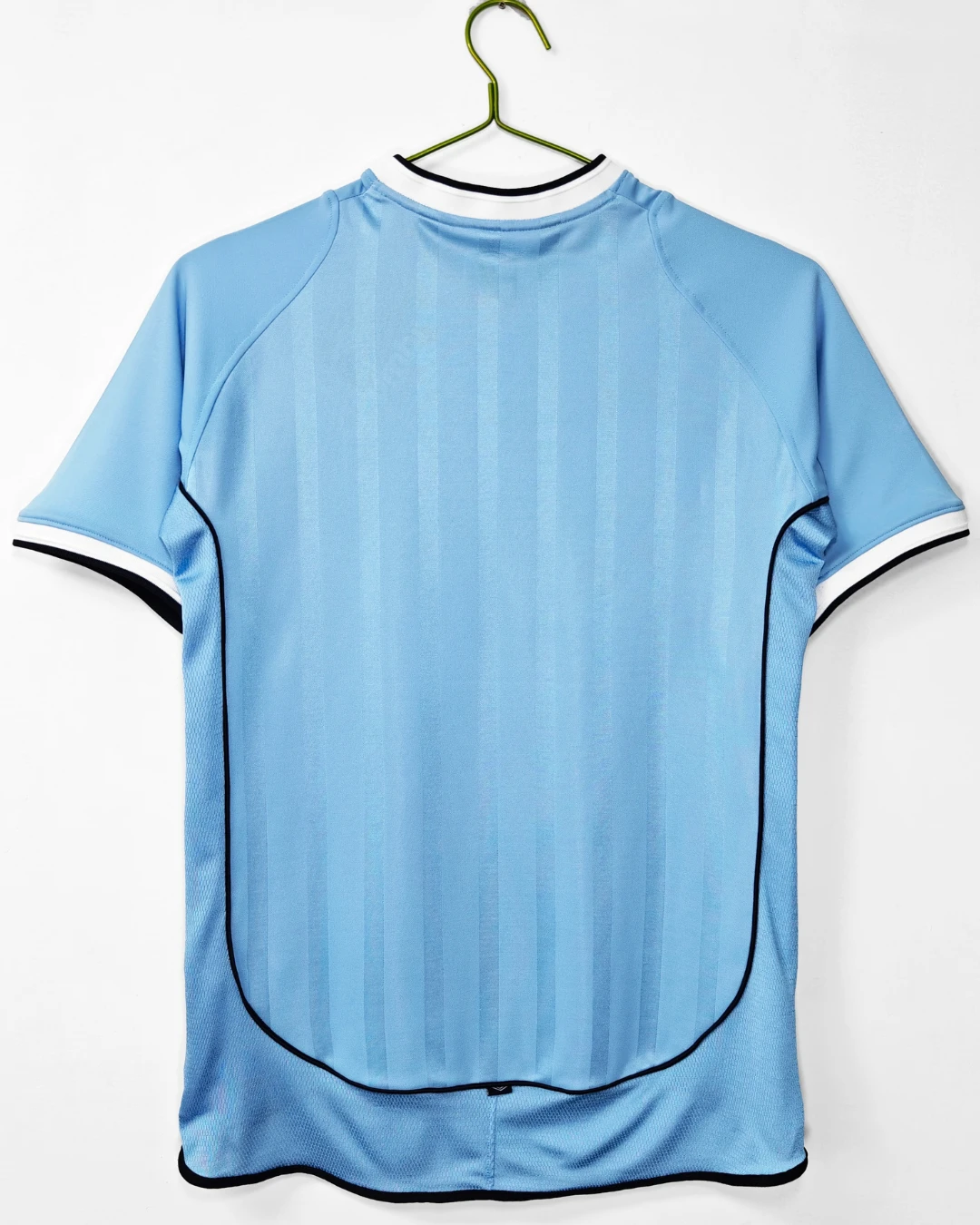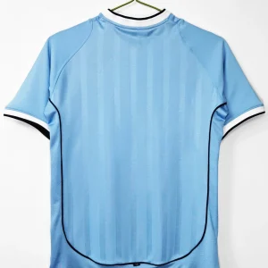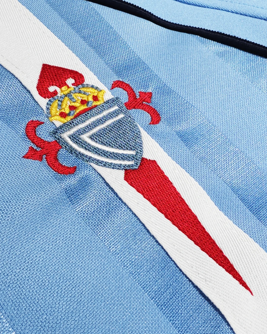 Celta Vigo’s 2001-2003 Home Jersey from Umbro defined their golden UEFA Cup semifinal era and La Liga top-6 finishes at Balaídos, featuring the iconic sky blue base with navy blue piping and white stripe on the left side evoking Galician seas, white V-neck collar, bold blue Citroën sponsor across the chest, worn during their European charge. Perfect for young Celestes supporters, this retro replica uses lightweight 100% polyester construction replicating Umbro’s knit texture, embroidered nautical anchor crest on left chest, Umbro diamond logo on right, short sleeves and regular relaxed fit.