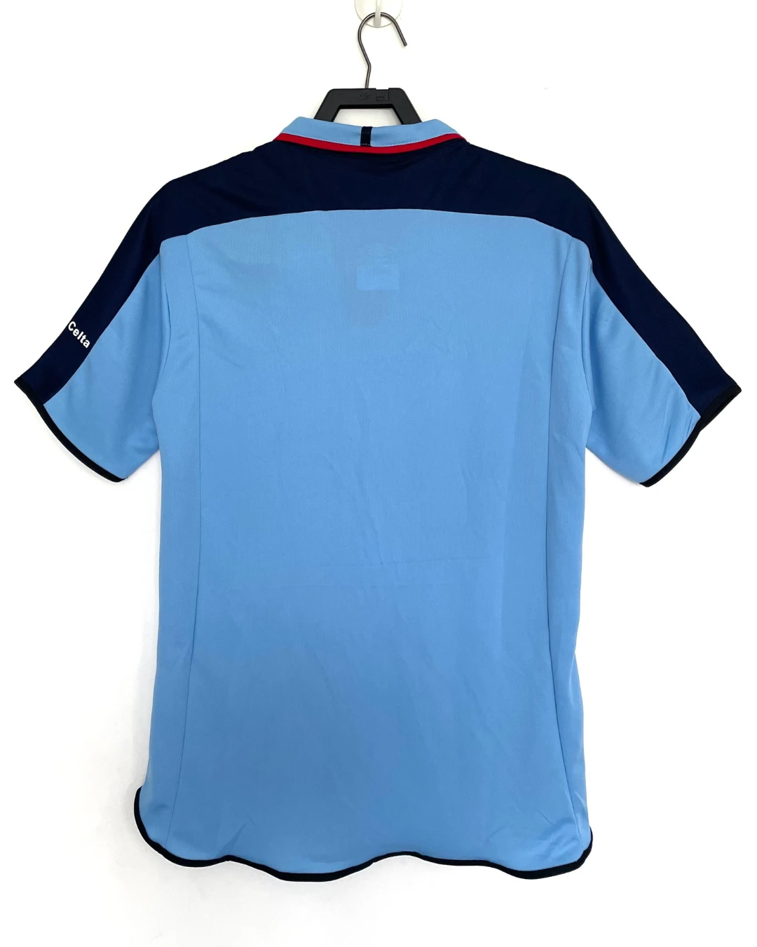 Celta Vigo’s 2003/04 Home Jersey powered their competitive La Liga campaign under coach Víctor Fernández, featuring Mostovoi’s creativity alongside Aspas, Güiza, and Catanha during memorable Balaídos battles before relegation battle. The iconic sky blue base with red and navy accents showcase polo collar, embroidered Celtic crest on left chest, prominent Citroën sponsor across the front, and Umbro logo opposite, classic Celestes design blending Galician heritage with early 2000s flair.