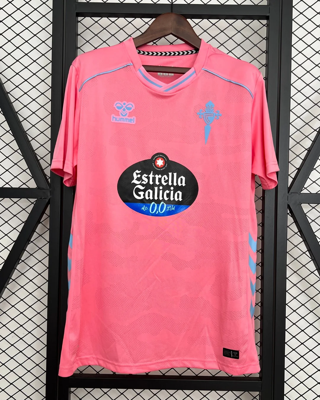 Make a bold statement with the Hummel Celta Vigo 25/26 Third Stadium Jersey, a vibrant and modern kit that reflects a renewed sense of identity and ambition for the club. The jersey features a striking bright pink base complemented by sky blue accents on the collar, sleeve cuffs, and branding, creating a dynamic and eye-catching design. The fully sky blue club crest on the chest enhances this bold color contrast, symbolizing Celta’s strong connection to its Galician roots.