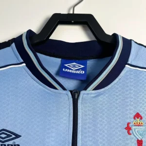 Step into the passionate era of Celta Vigo’s Balaídos glory with this iconic 1999-2001 home jersey. Crafted by Umbro, the shirt features a vibrant sky blue base with dark blue and white trim for a classic, striking look that embodied “Os Celestes” during their competitive La Liga campaigns. Made from lightweight 100% polyester fabric, it offers breathability and comfort ideal for matchdays or display.