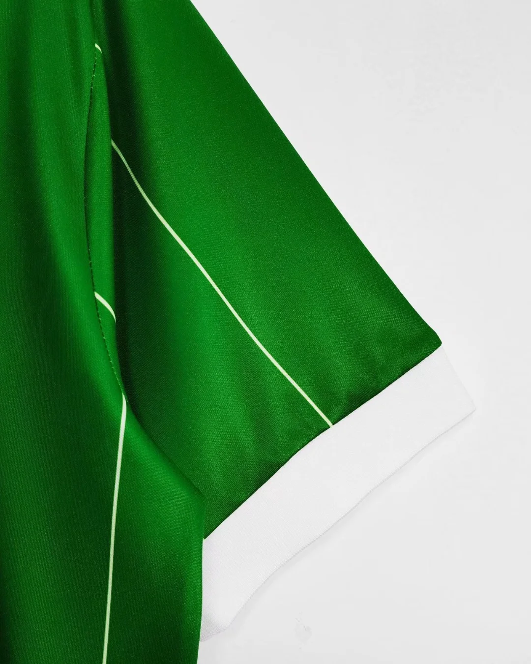 Celebrate the heritage of Celtic FC with the classic 1982/84 Third Jersey, a distinctive part of the club’s rich history and renowned green and white tradition. This vintage Umbro-designed jersey features a predominantly mint green body and white pinstripes, a rare and eye-catching colorway that stands out from the usual hoops, symbolizing a unique era in Celtic’s football legacy.